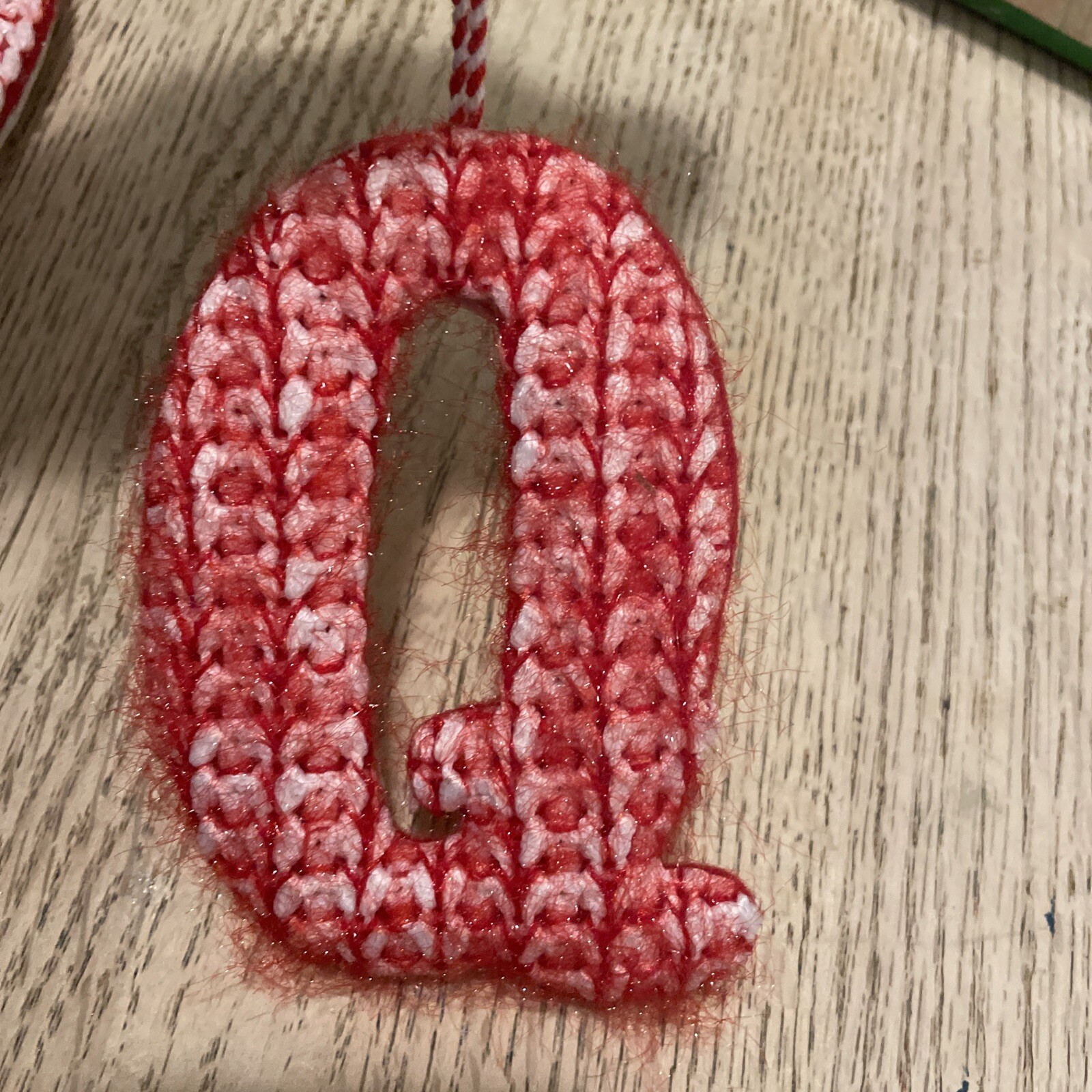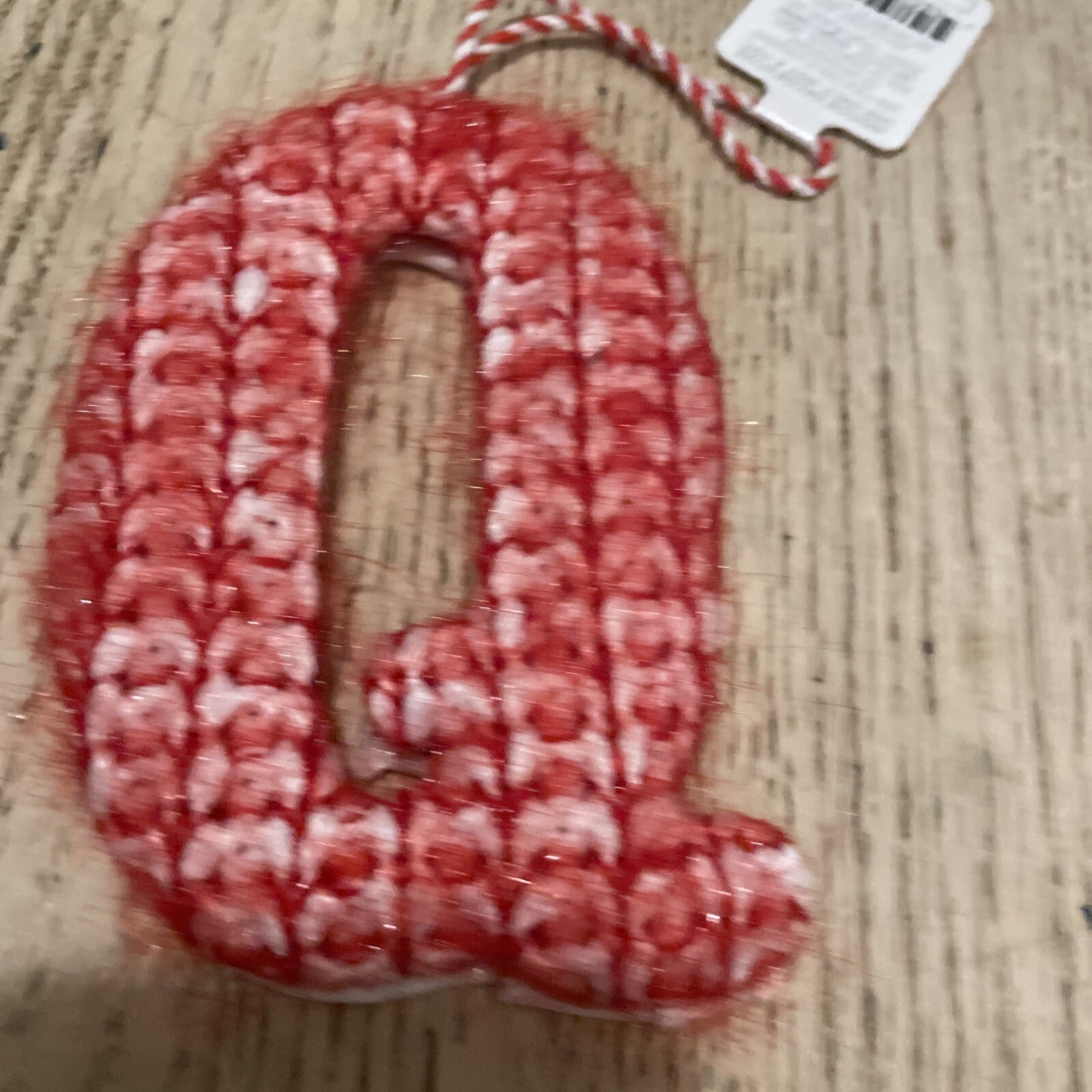 как выглядит Letter Q Chunky Knit Monogram Christmas Tree Ornament Red/White Wondershop фото