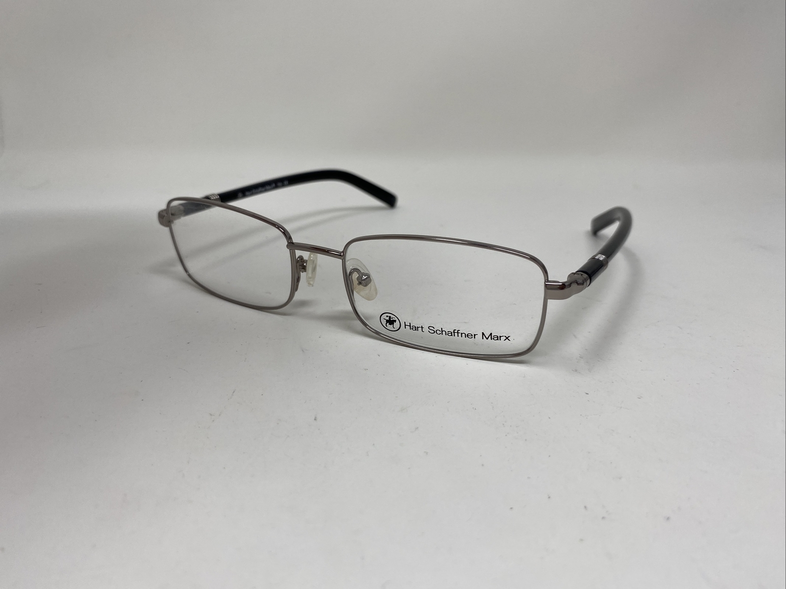 как выглядит HART SCHAFFNER MARX EYEGLASS FRAME 755 GUNMETAL BLACK 53/17/140 FLEX HINGE E54 фото