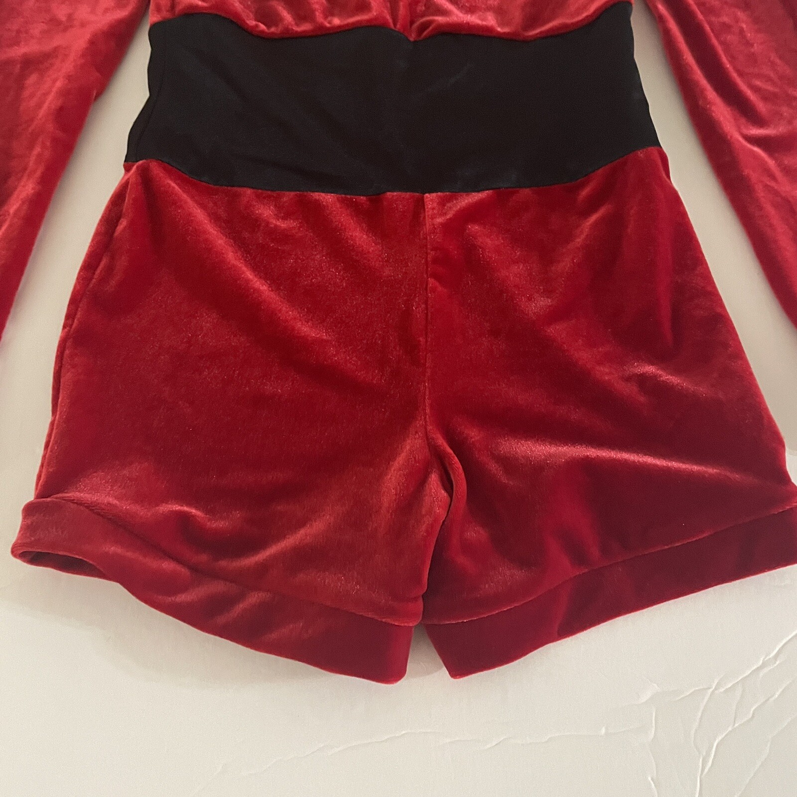 как выглядит Weissman Dance Costume Red Stretch Velvet Biketard LC 14 Style 11037 Gem Studded фото