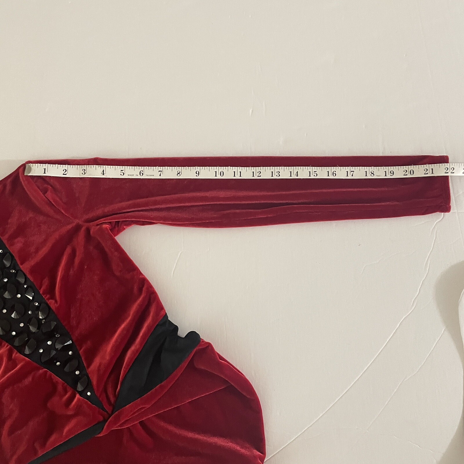 Weissman Dance Costume Red Stretch Velvet Biketard LC 14 Style 11037 Gem Studded