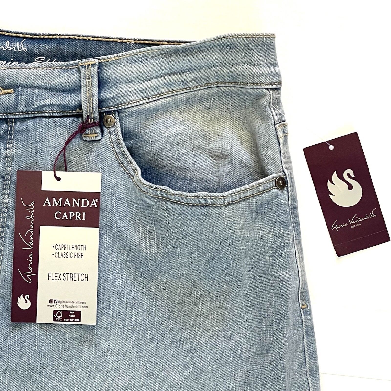 как выглядит GLORIA VANDERBILT Amanda Capri SIZE 16 Zermatt Blue Cropped Denim Jeans NWT фото