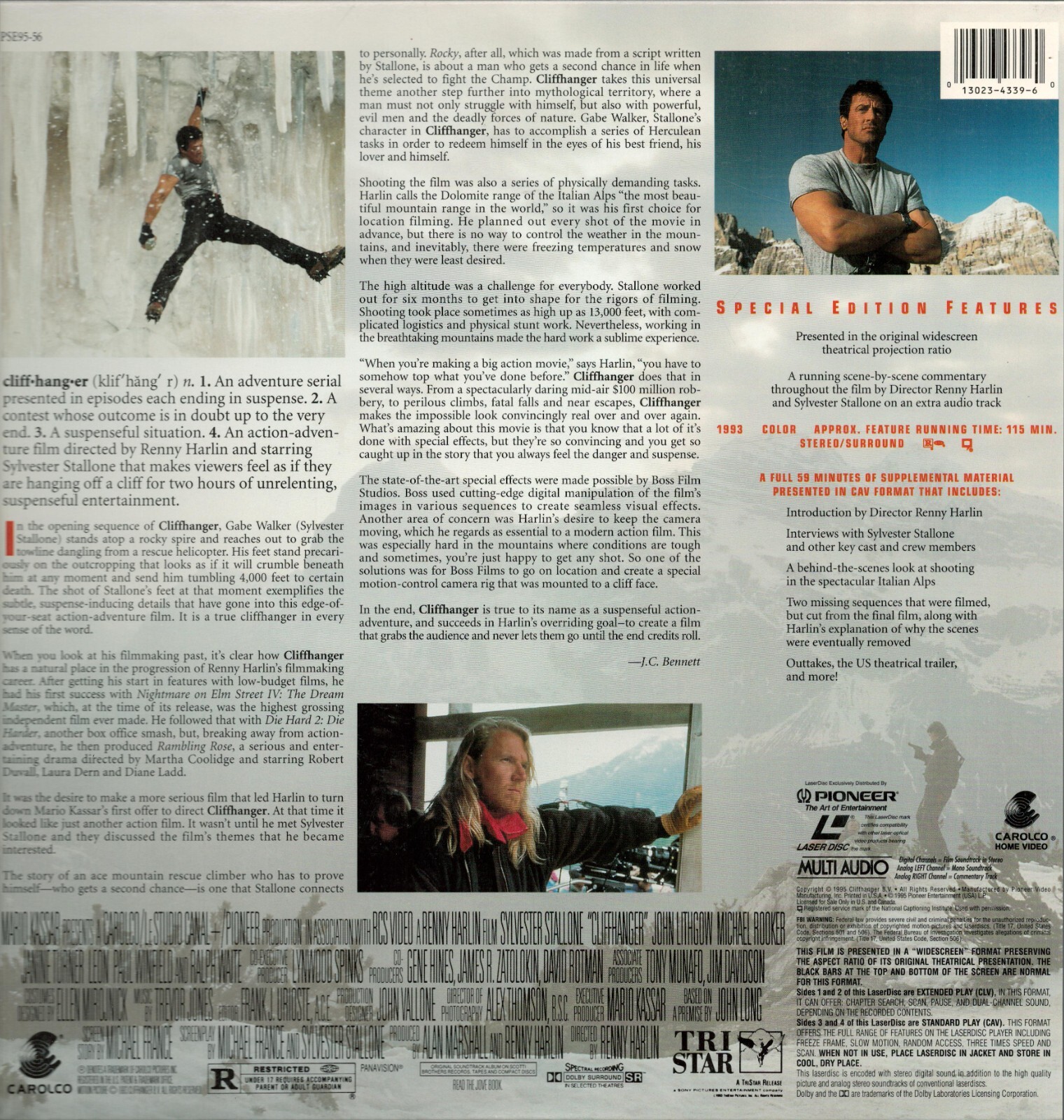 Cliffhanger Laserdisc CAV, 1993, Special Edition