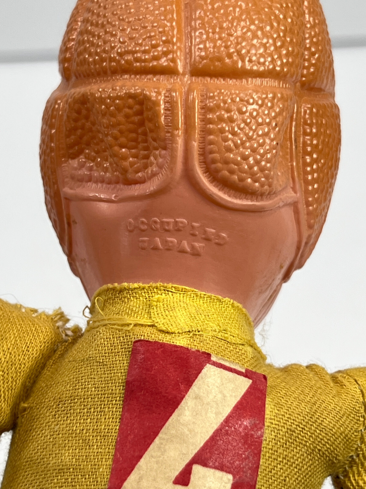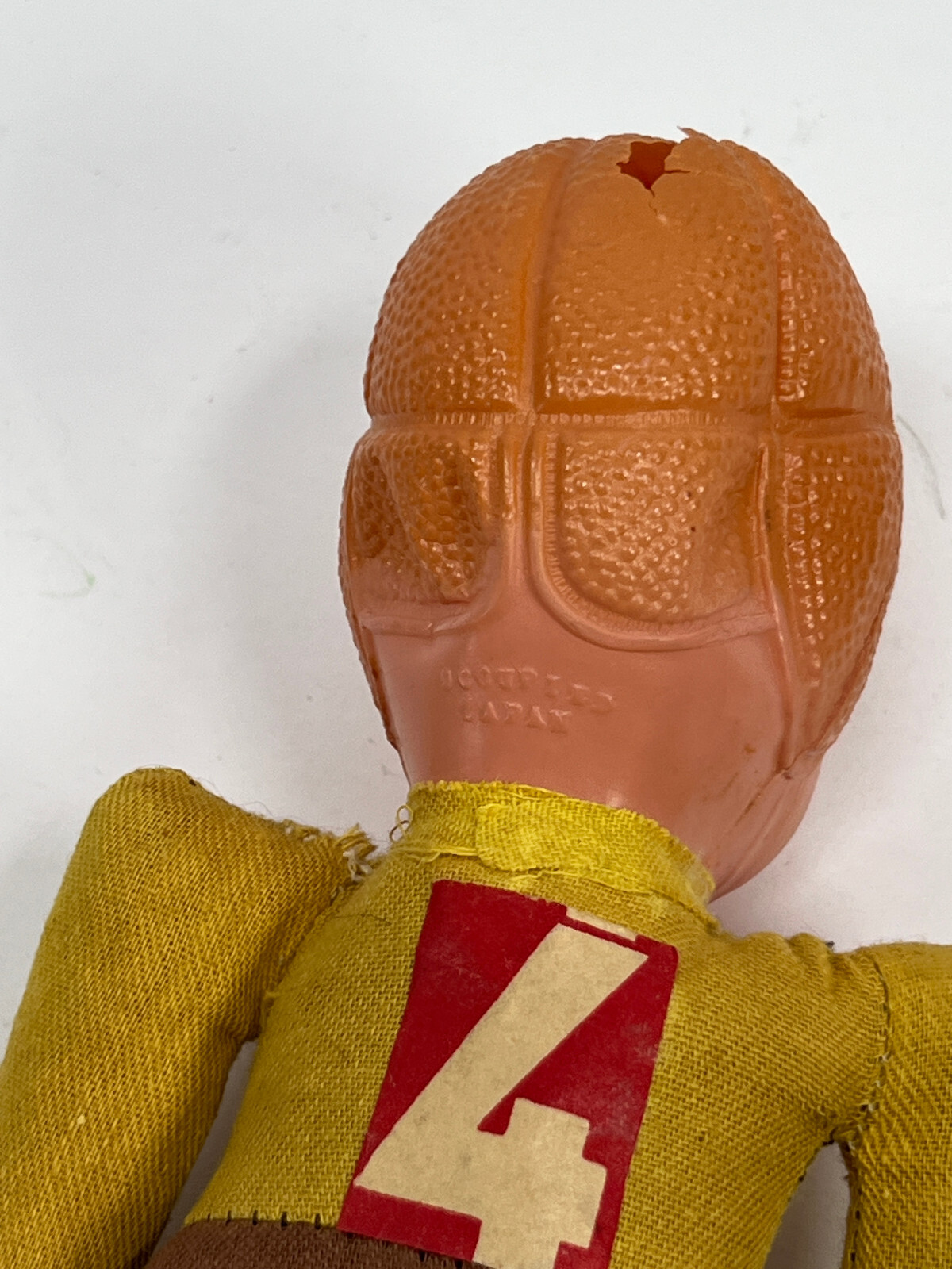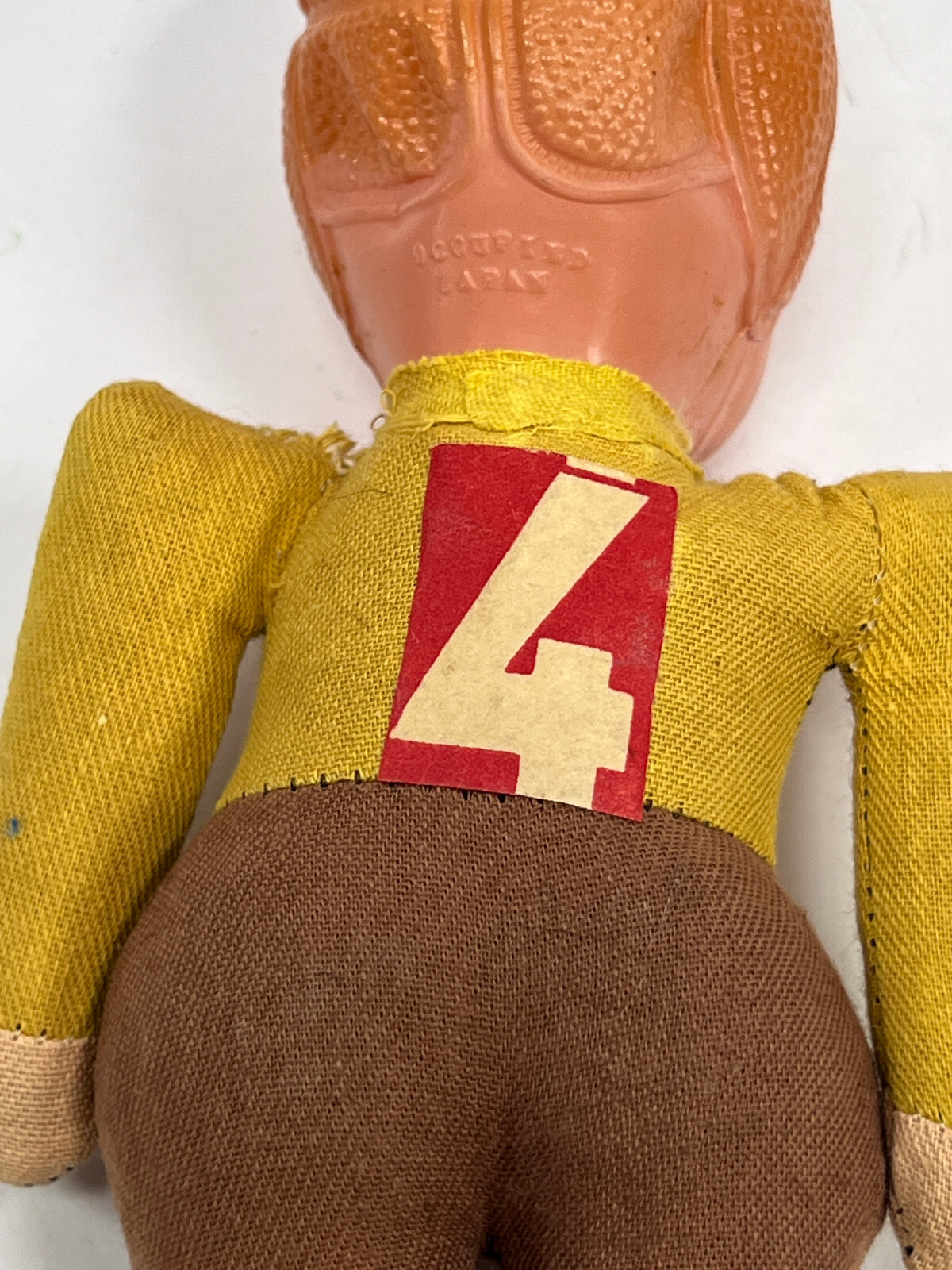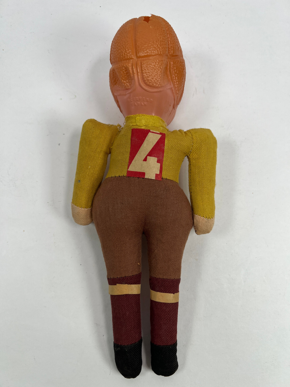 vtg 40s 50s Celluloid Headed Football Player Toy Doll yellow brown red 4