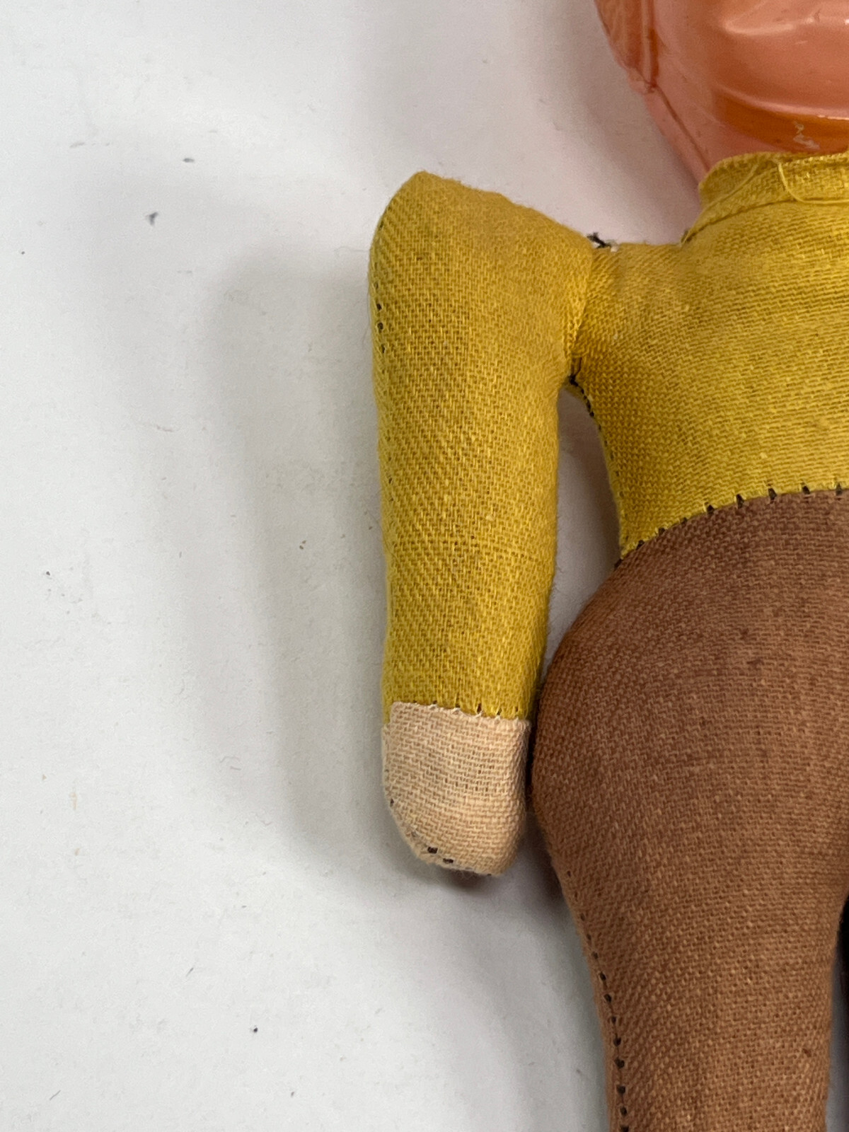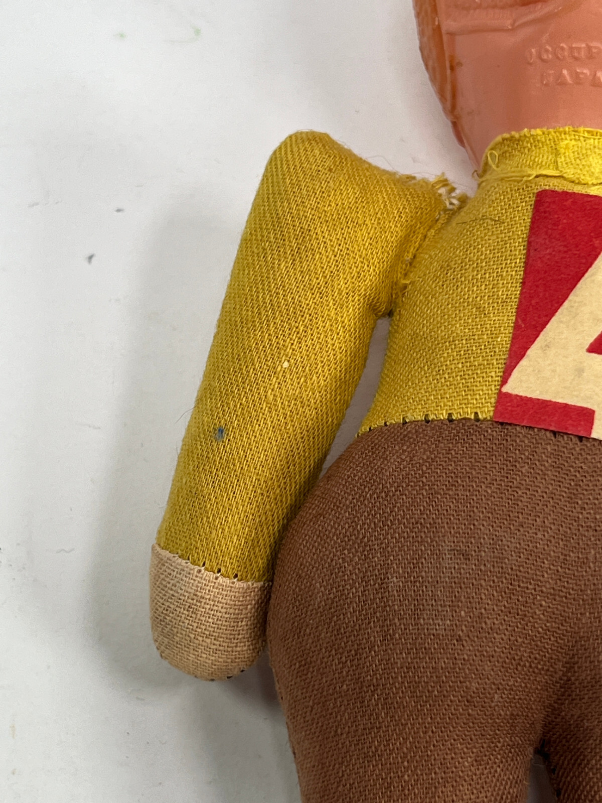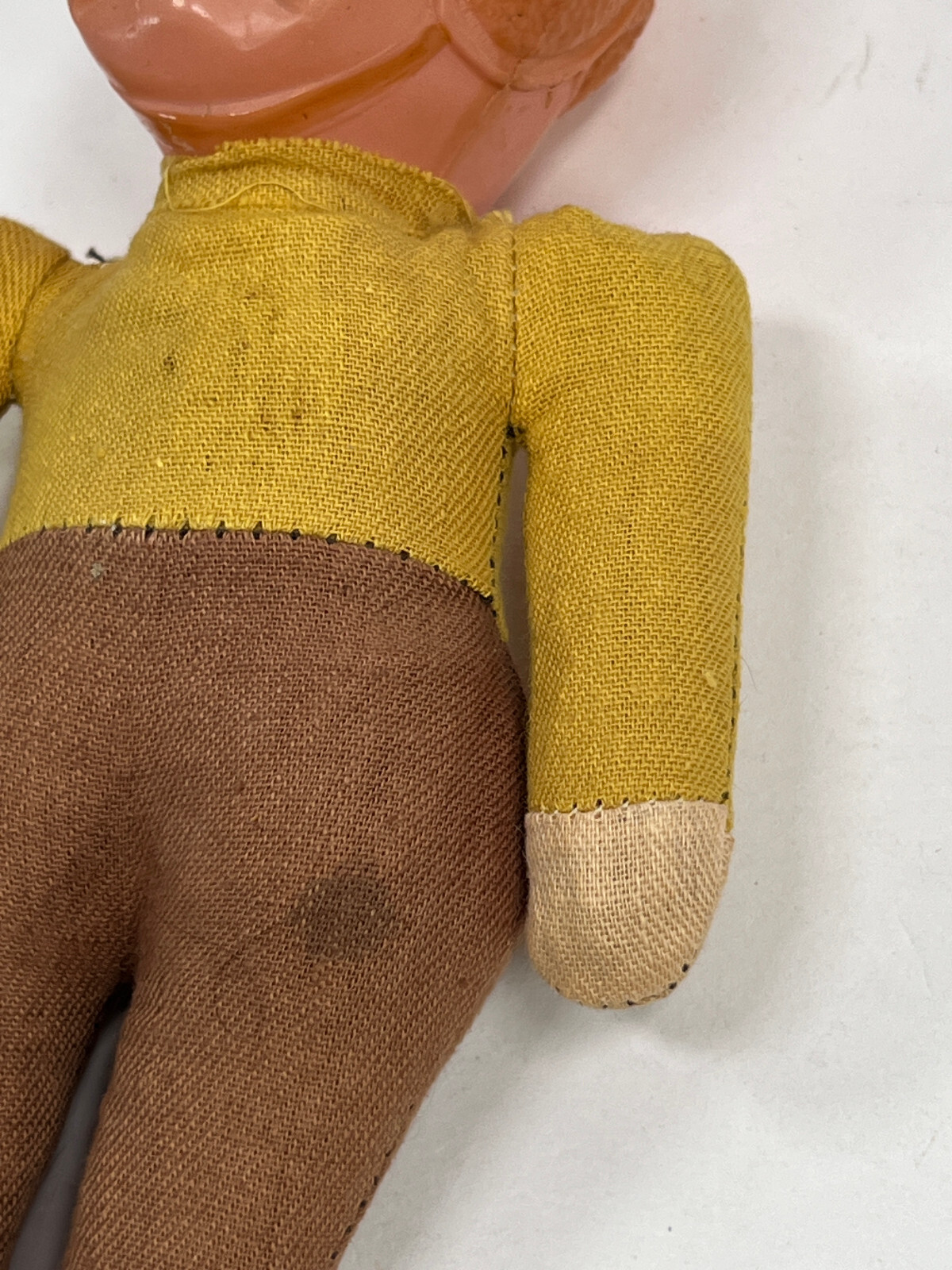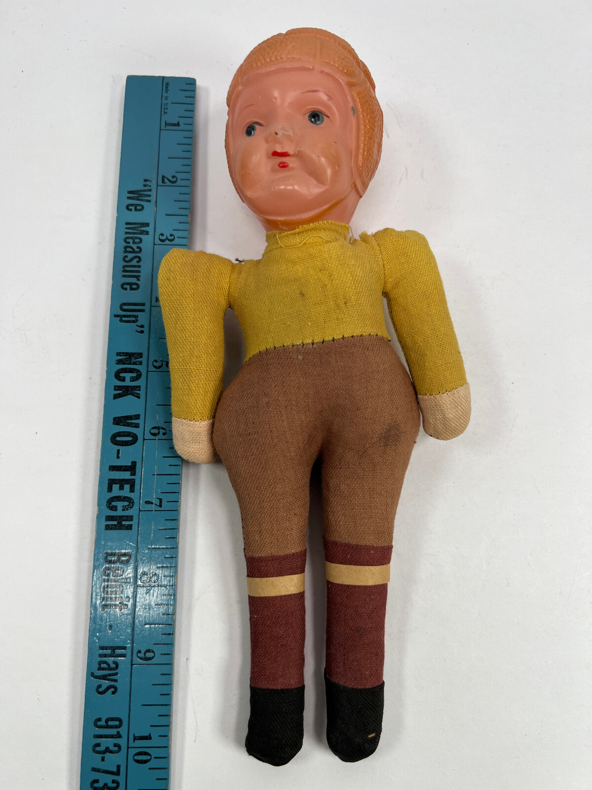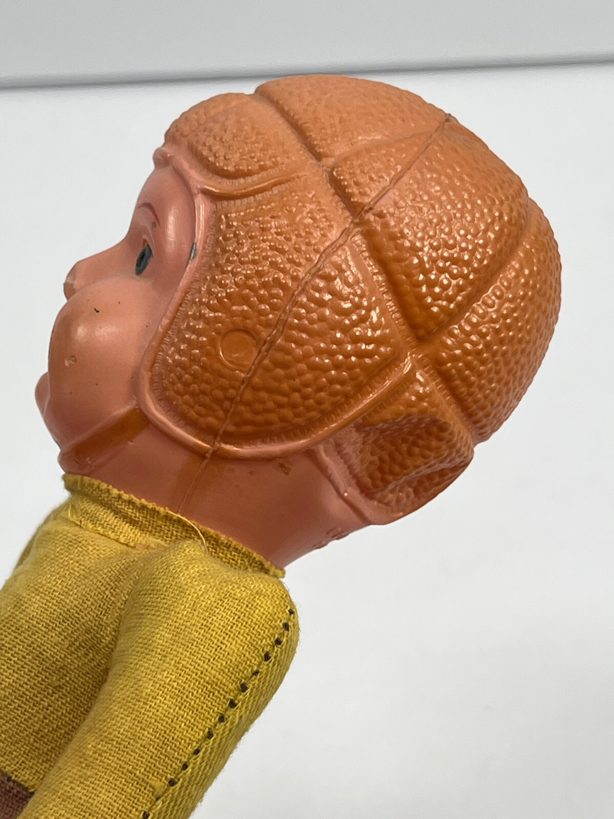 vtg 40s 50s Celluloid Headed Football Player Toy Doll yellow brown red 4