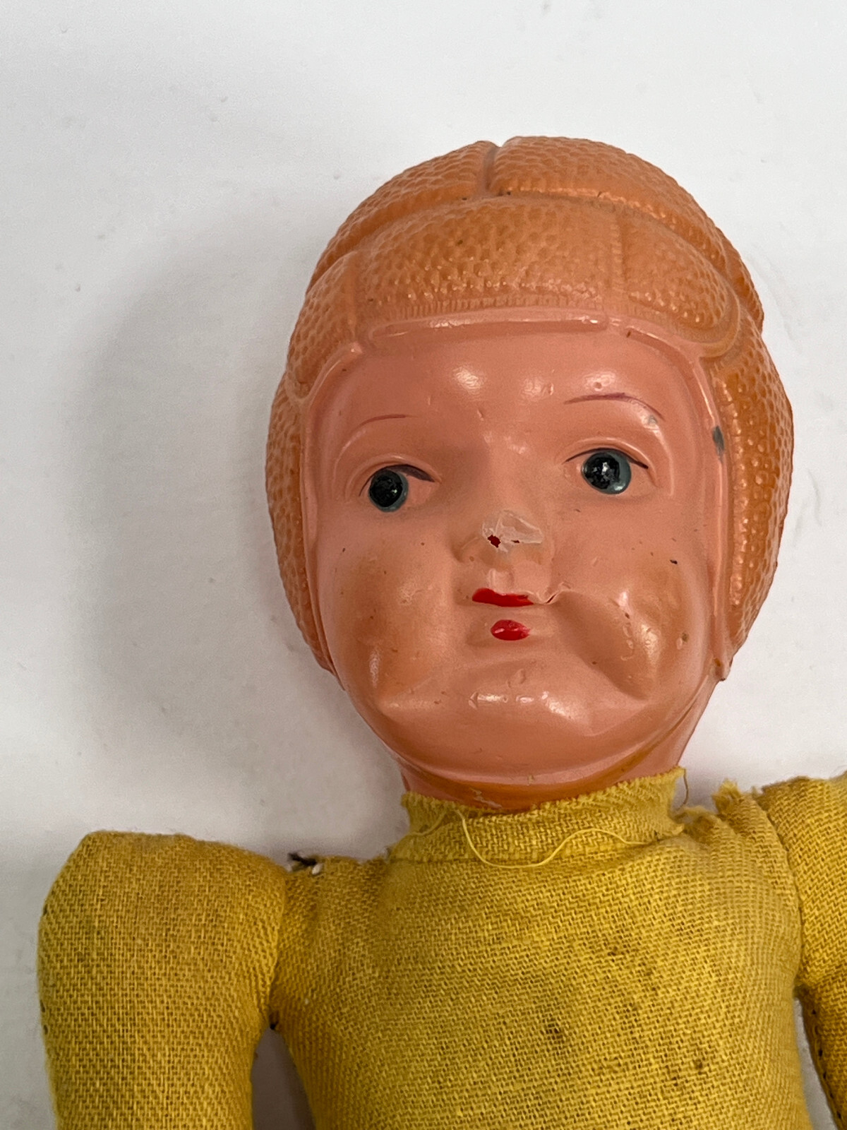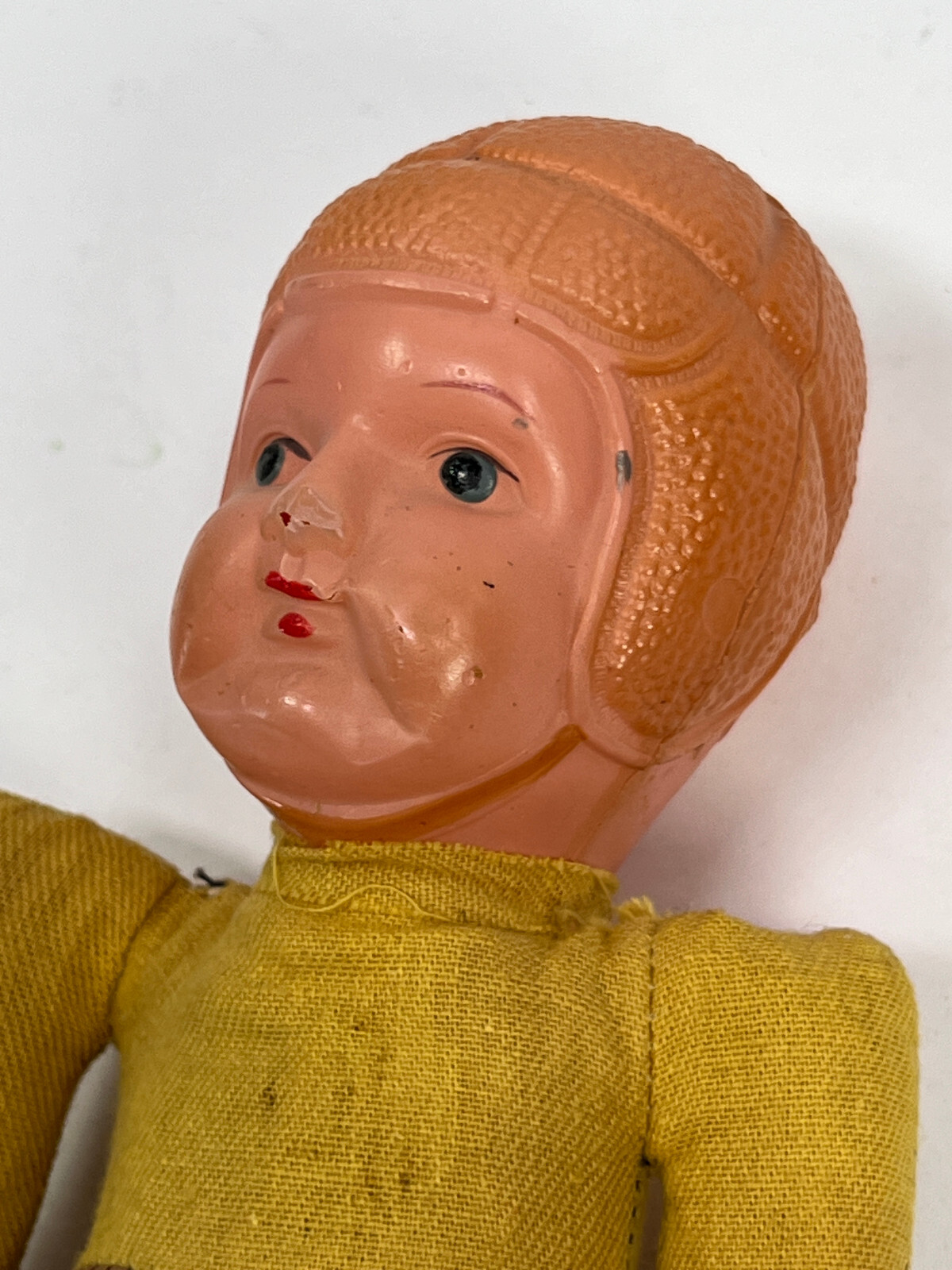 как выглядит vtg 40s 50s Celluloid Headed Football Player Toy Doll yellow brown red 4 фото