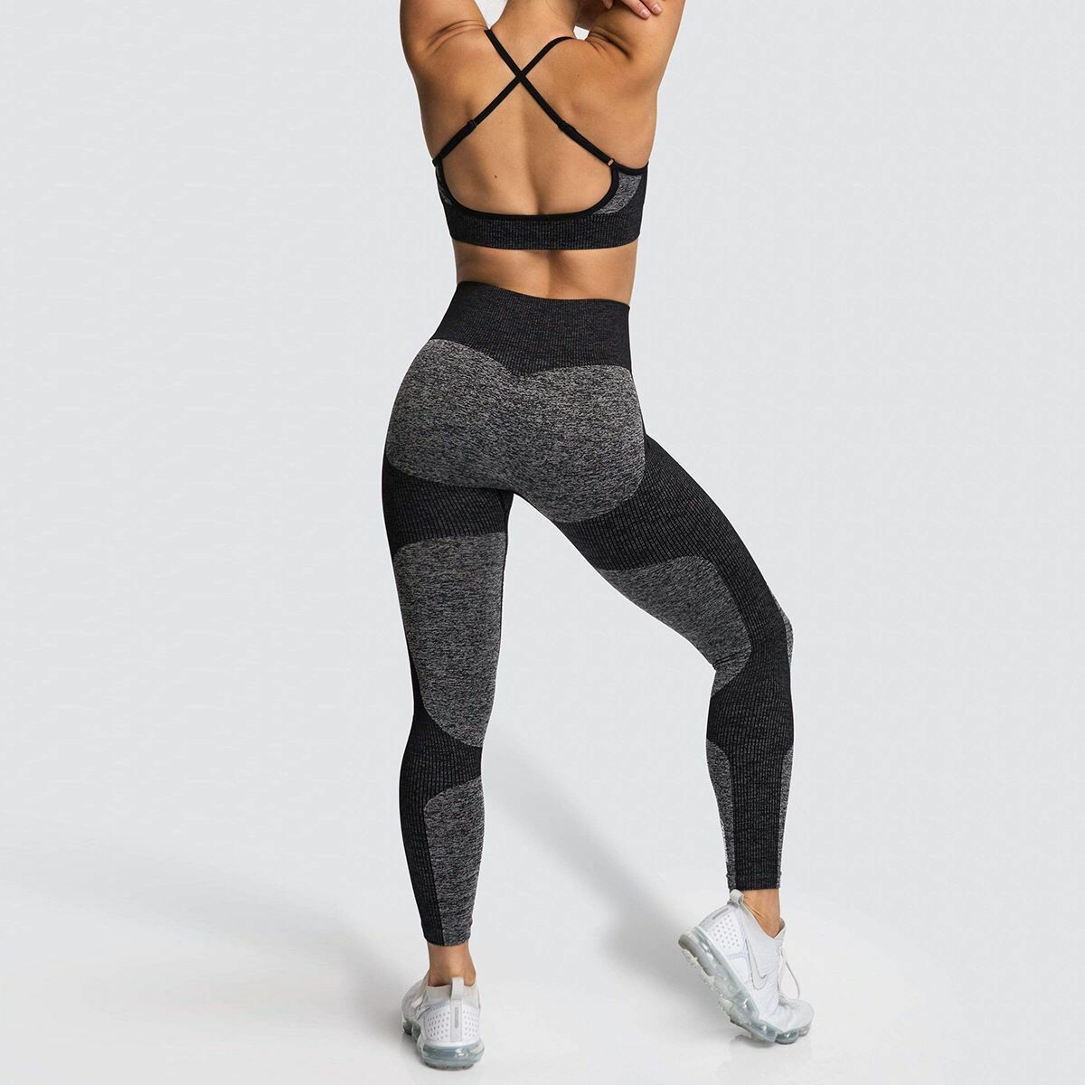 2PCS Women Seamless Yoga Set Gym Top Bra Leggings Workout Fitness Suit UK Size M