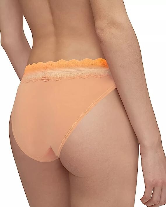 как выглядит Calvin Klein Womens Micro with Lace Band Bikini Panty Peach Melba Large фото