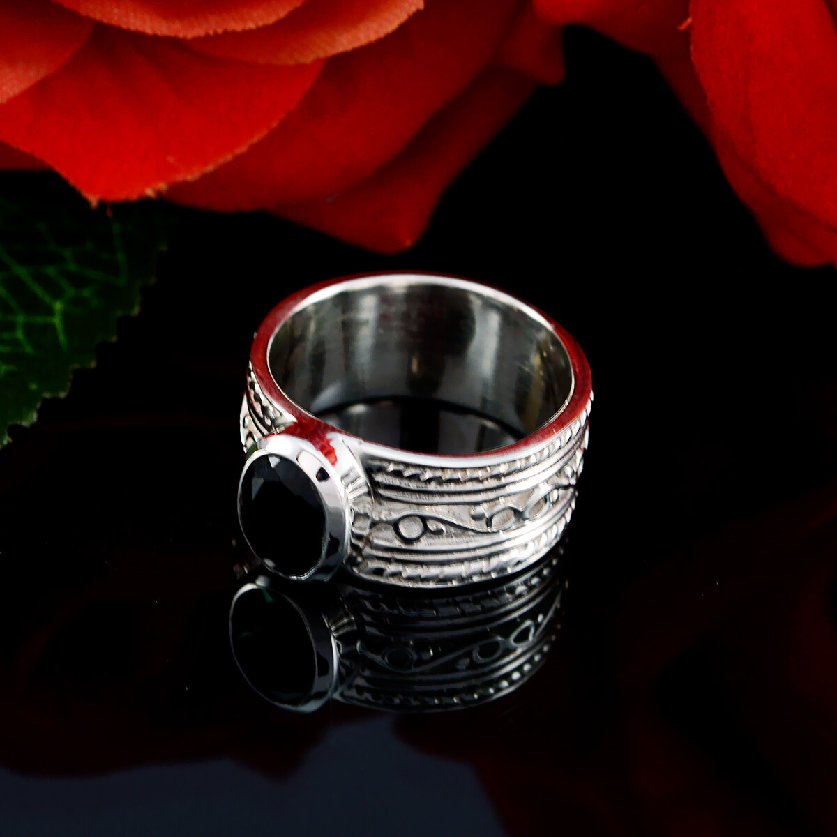 Black Onyx Sterling Silver Ring Manmade Jewelry For Children's Day Gift US