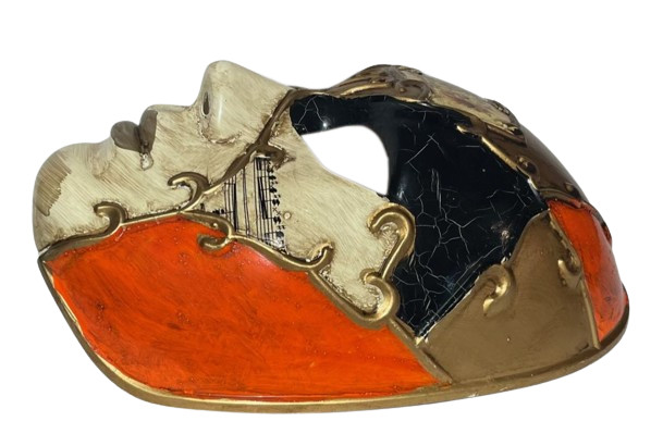 Deluxe ORANGE MIME JESTER VENETIAN MASK Clown Joker Mardi Gras Masquerade Ball