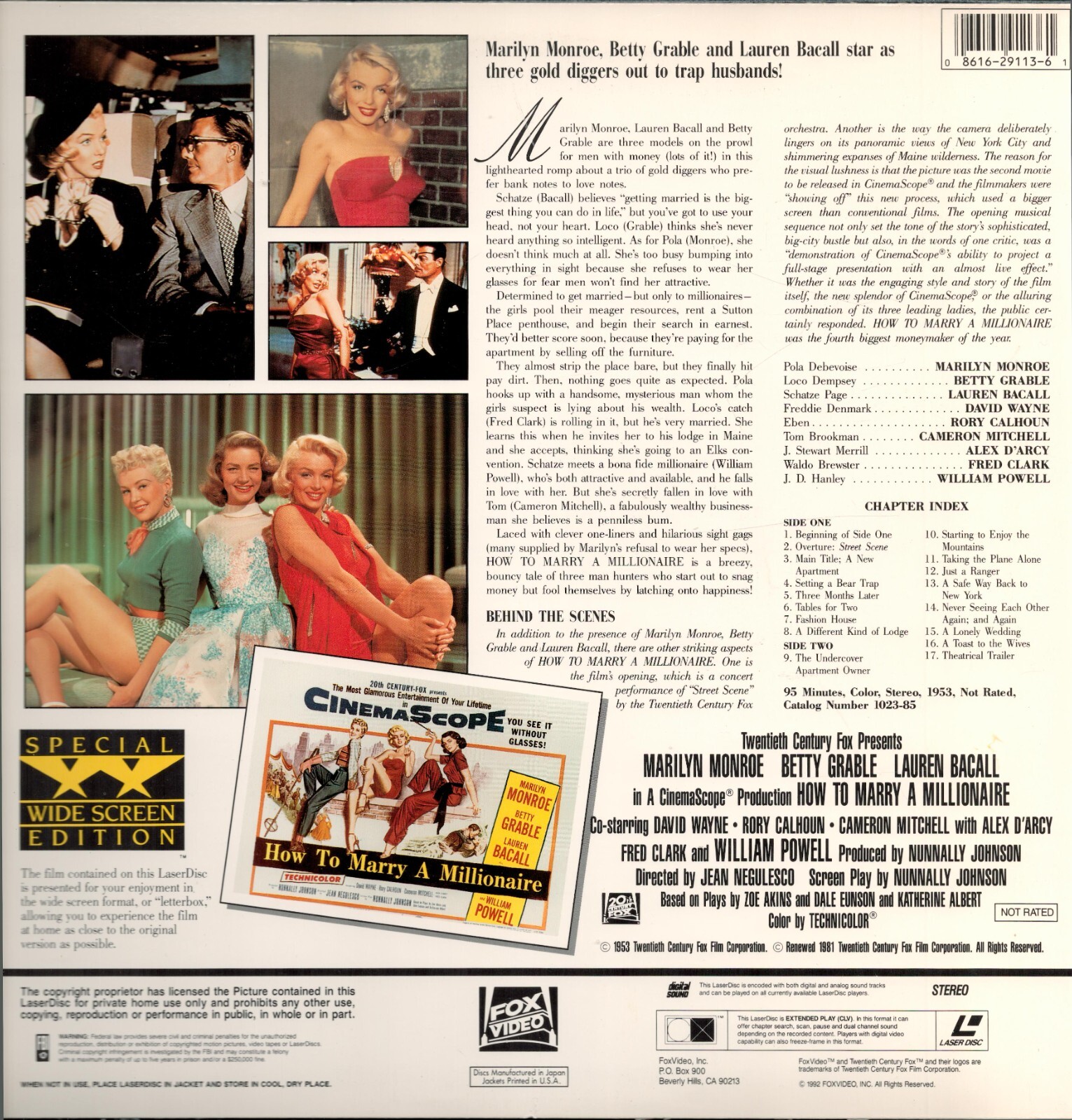 How to Marry a Millionaire 1953 Widescreen Laserdisc - Extended Play