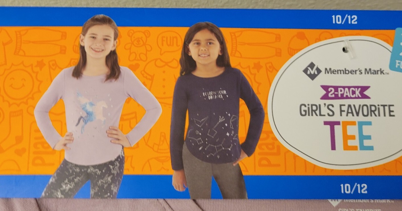 Member's Mark Girl's 2-Pack Long Sleeve Soft Comfort Tees Size 10/12