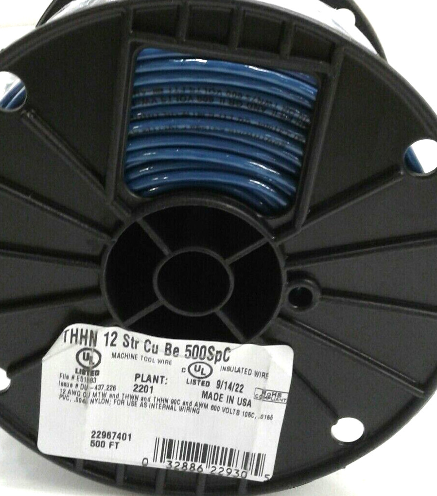Southwire 22967401 THHN 12 Gauge Stranded Blue Building Wire 500' Roll