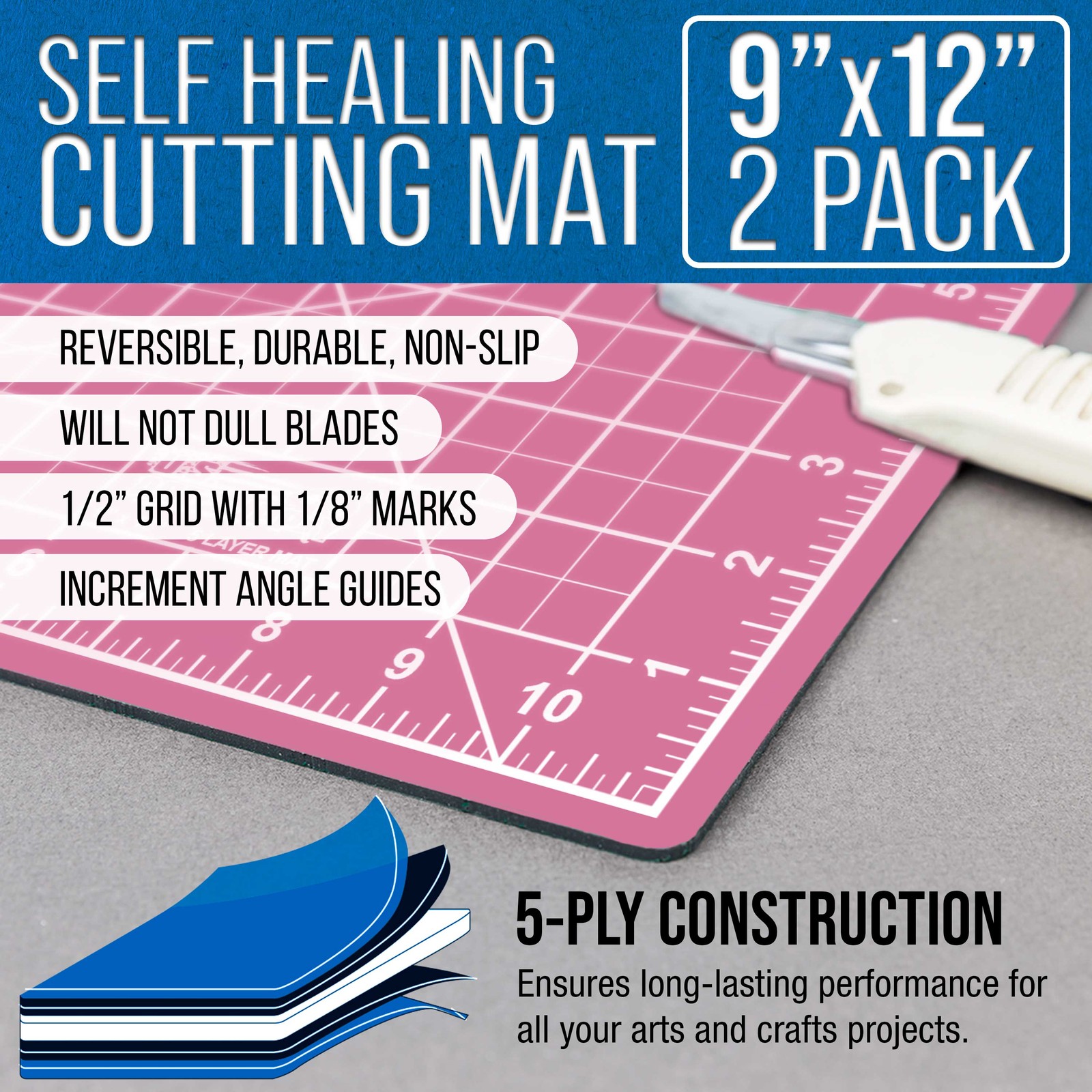 9 x 12 PINK/BLUE Self Healing 5-Ply Double Sided PVC Cutting Mat - 2 Pack