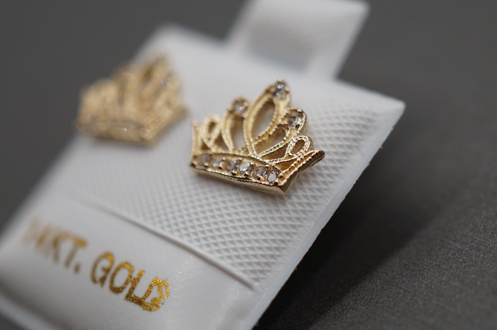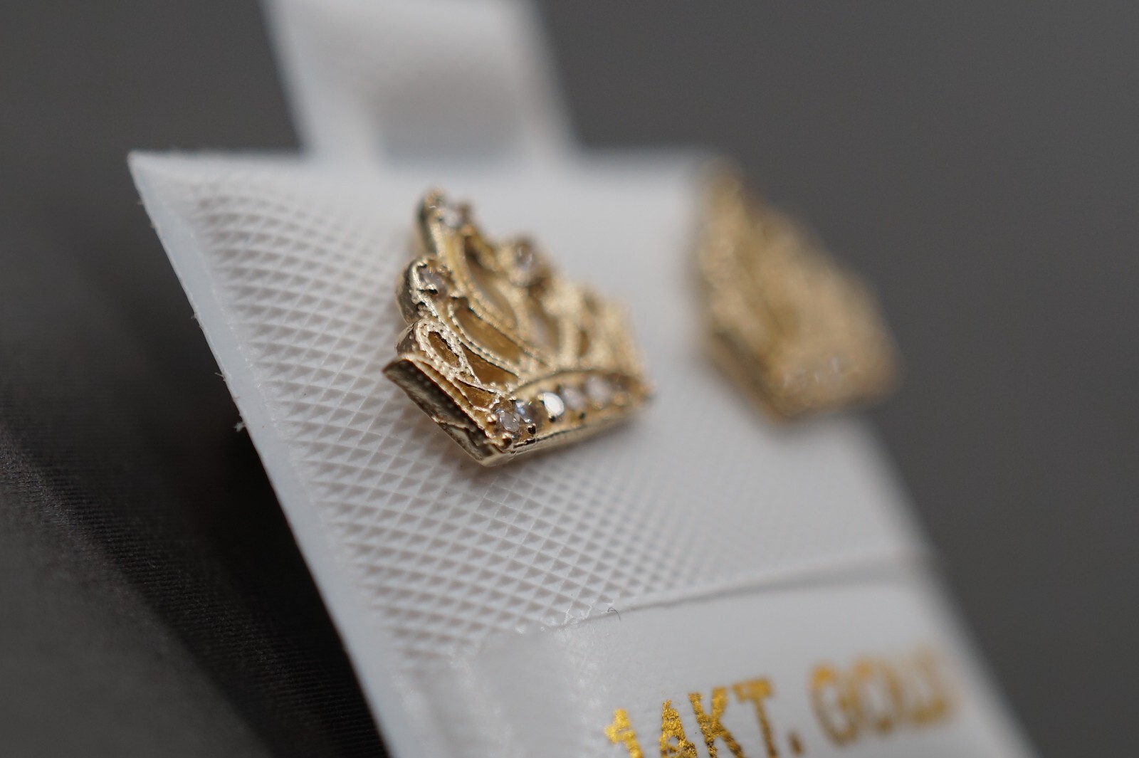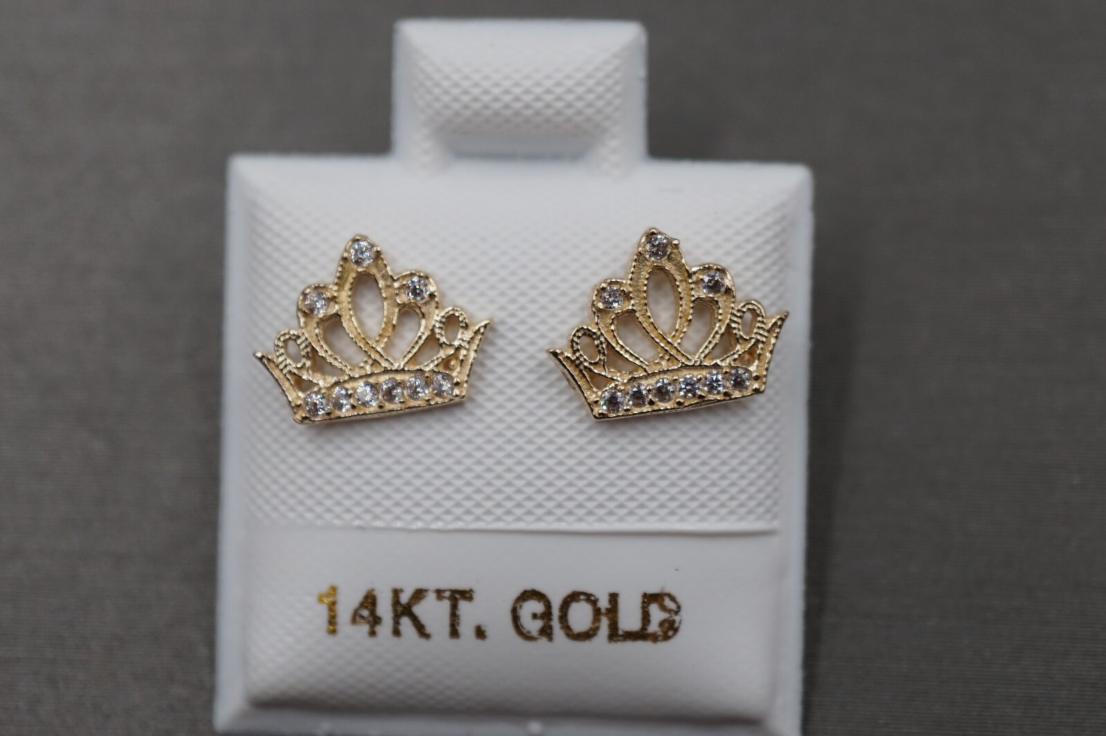 как выглядит 14K Solid Yellow Gold 10mm x 7.5 mm Princess Crown CZ Screw Back Stud Earring. фото