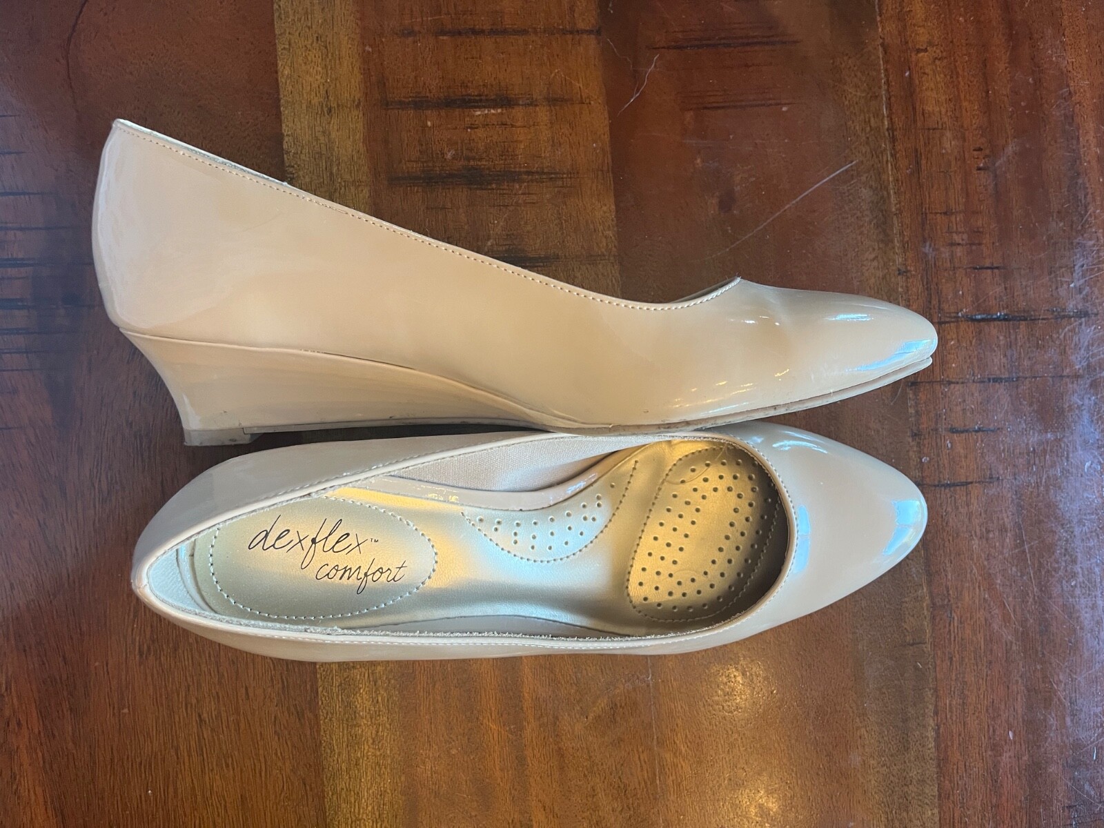 как выглядит womens dress shoes Small heel wedge Shiny фото