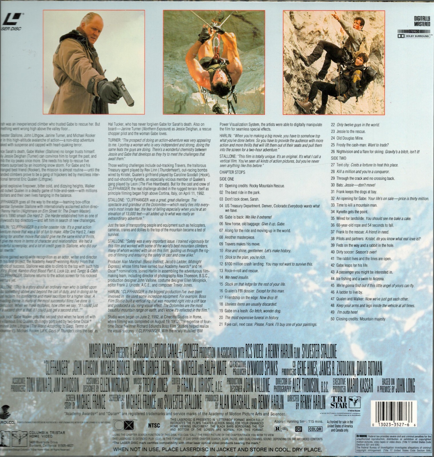 Cliffhanger Laserdisc Widescreen Sylvester Stallone John Lithgow