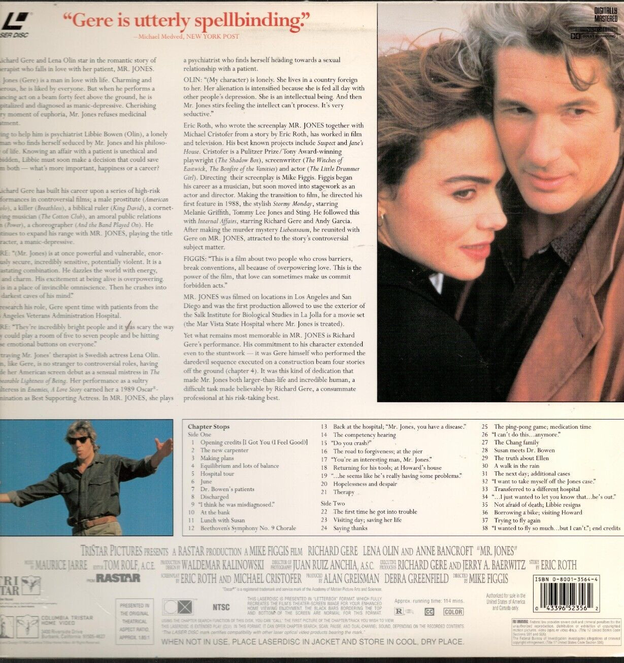 как выглядит Mr. Jones Laserdisc LD 1994 Richard Gere Lena Olin Anne Bancroft фото