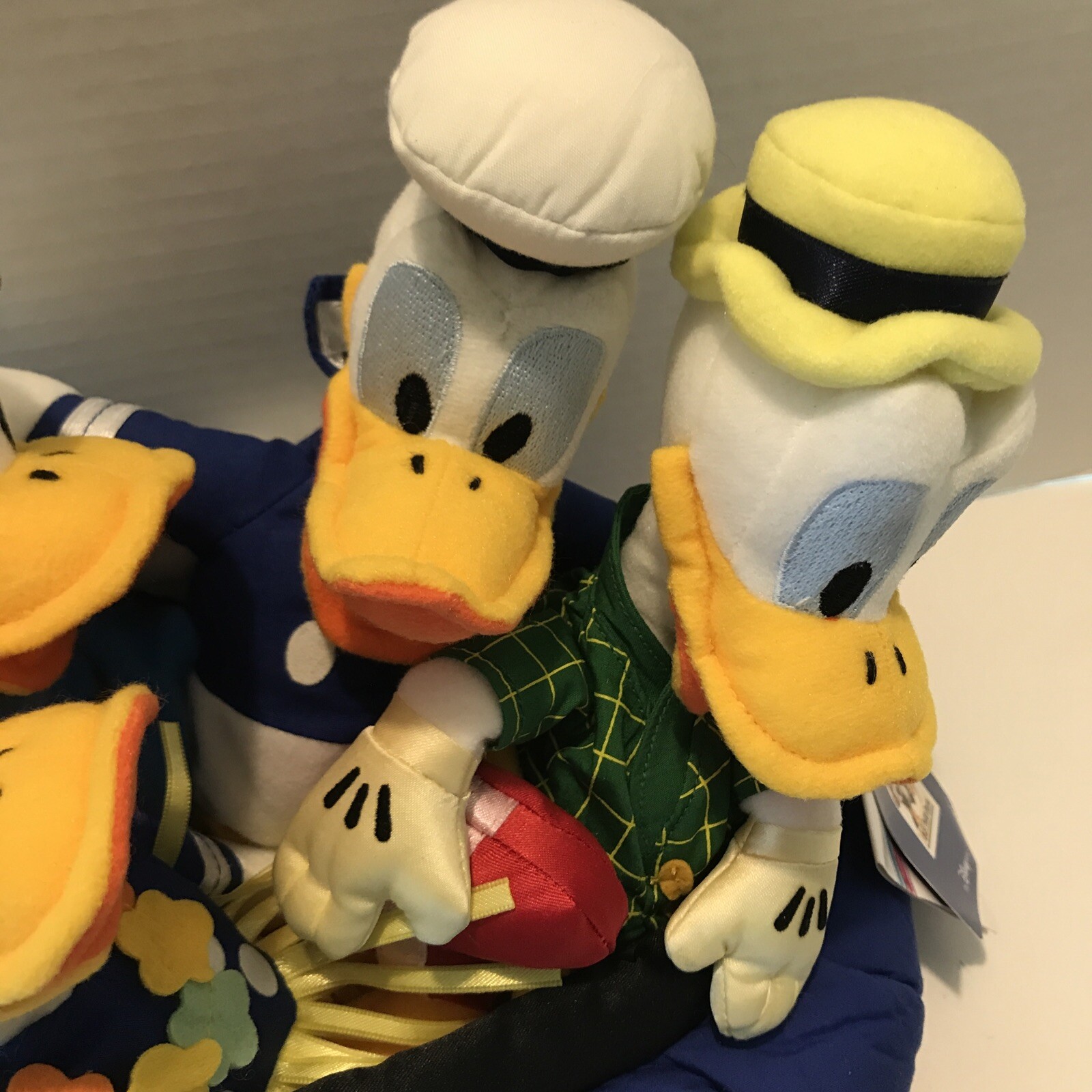 как выглядит Vintage Disney Donald Duck Bean Bag Plush Set of 4 65th Anniversary 1999 NEW фото