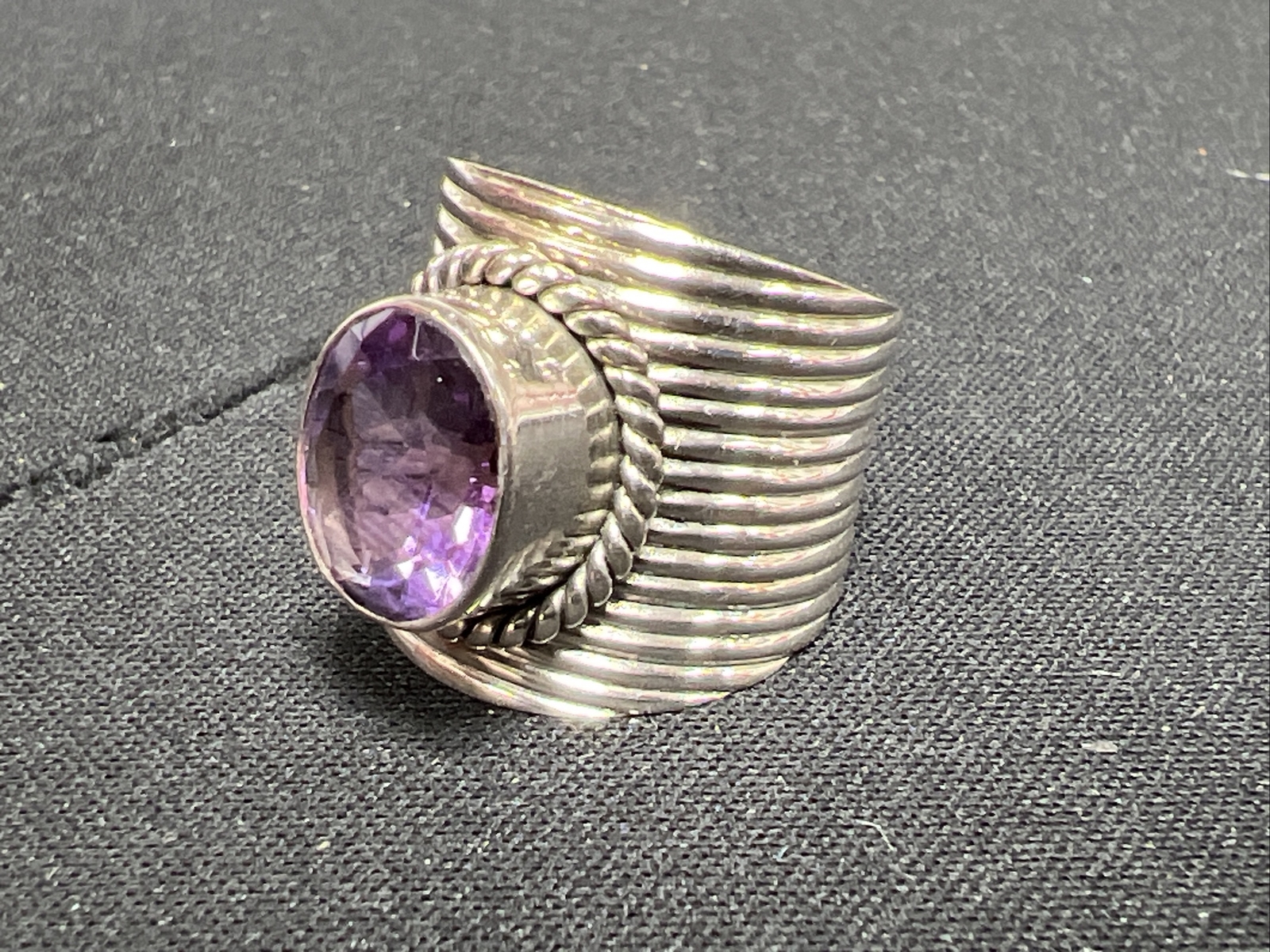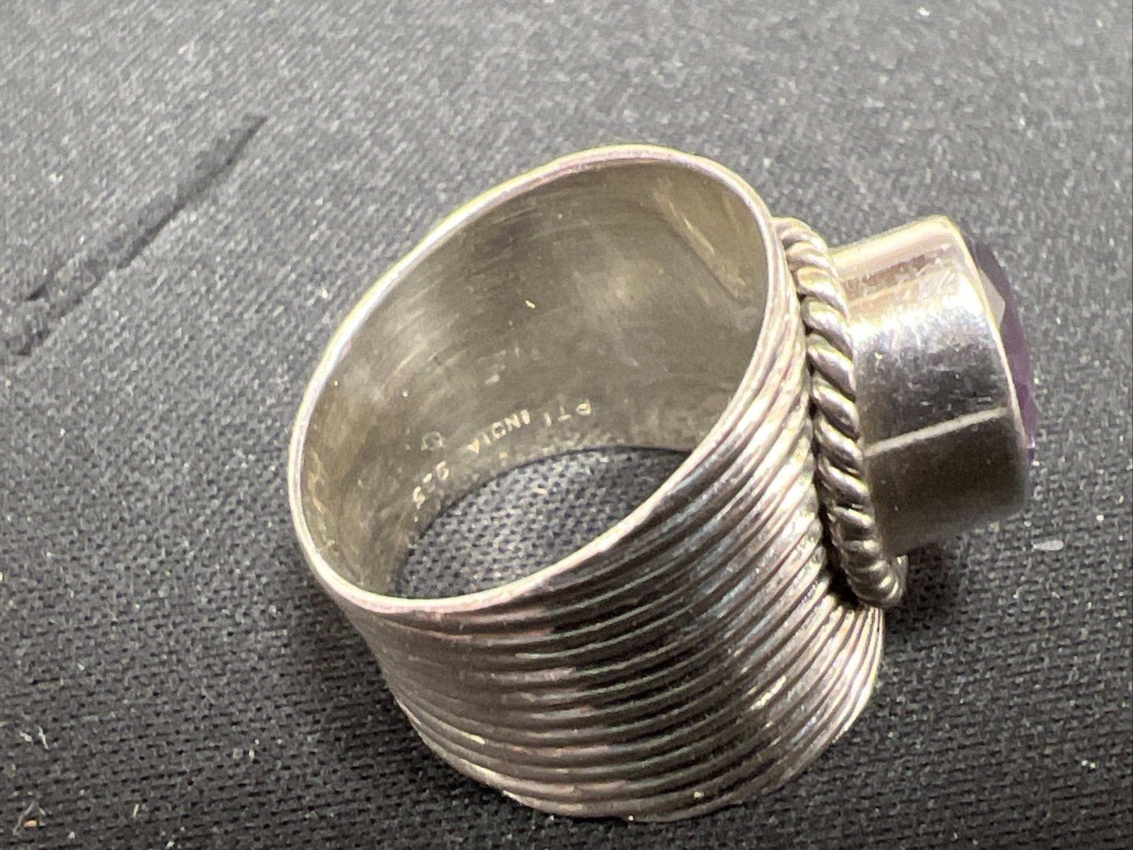 Vintage India 925 Wide Ring With Amethyst 6.6g Tw N260