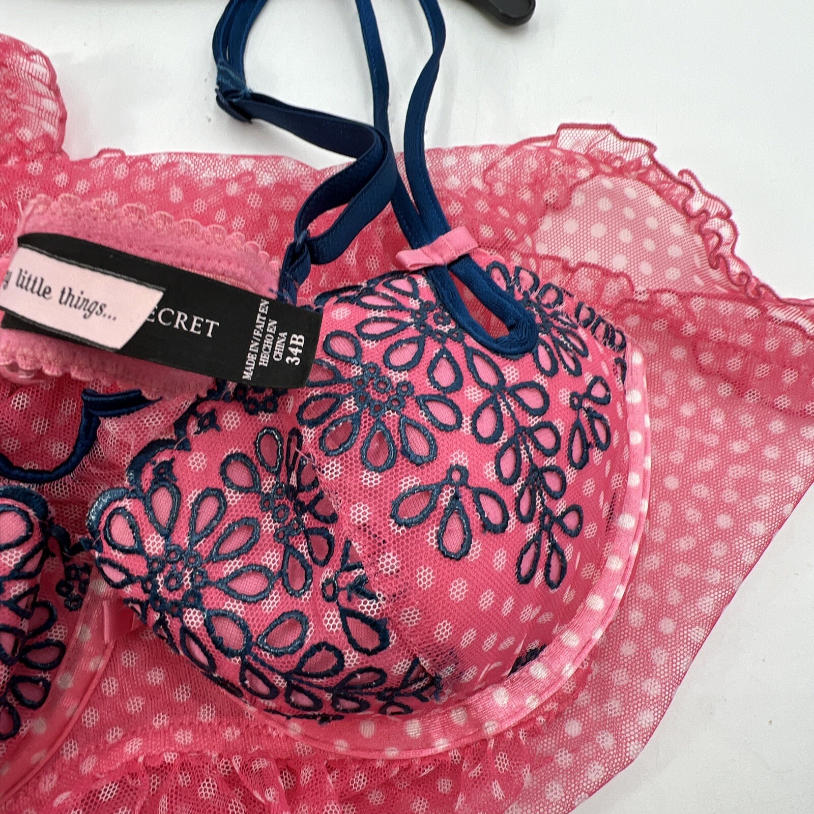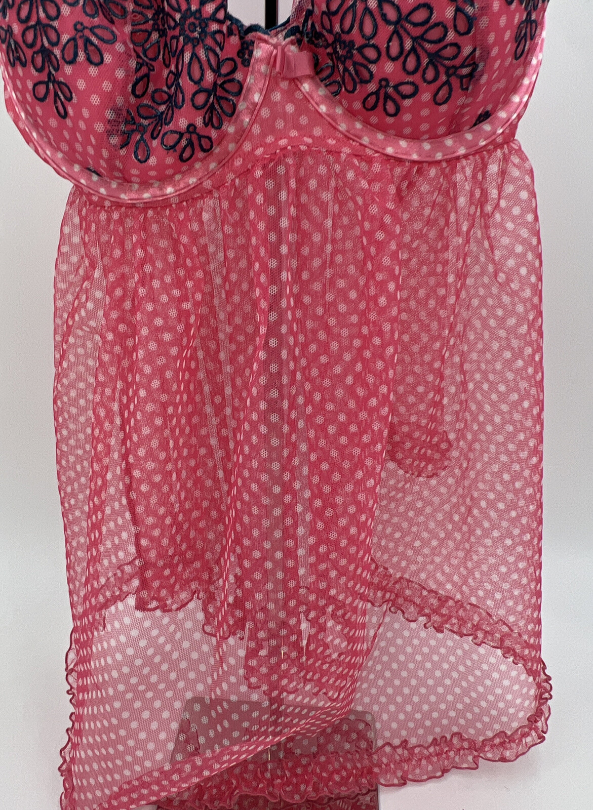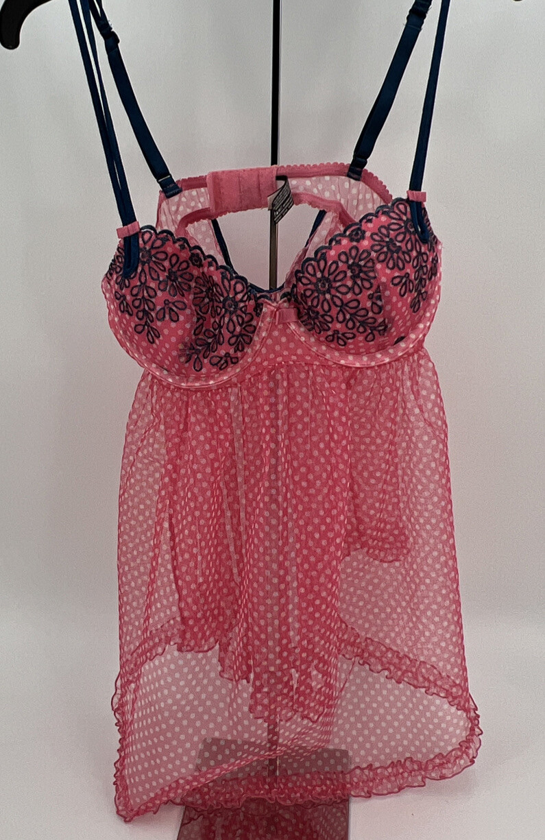 Victoria's Secret Babydoll 34B Hot Pink Polka Dot Sheer Nightie Lingerie 2011