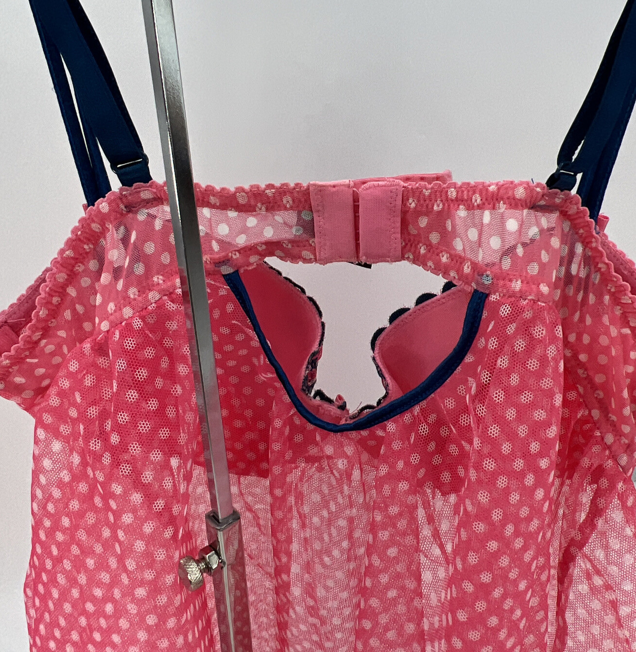 как выглядит Victorias Secret Babydoll 34B Hot Pink Polka Dot Sheer Nightie Lingerie 2011 фото