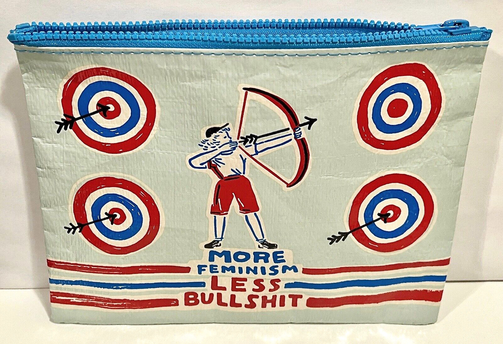 BLUE Q BAG MORE FEMINISM ZIPPER CLUTCH COSMETICS MAKEUP STASH ORGANIZER 7 X 9
