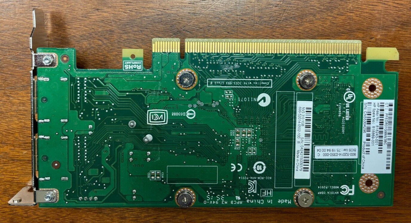 HP NVIDIA NVS 310 1GB Graphics Video Card Short Bracket SFF - 2 x DP