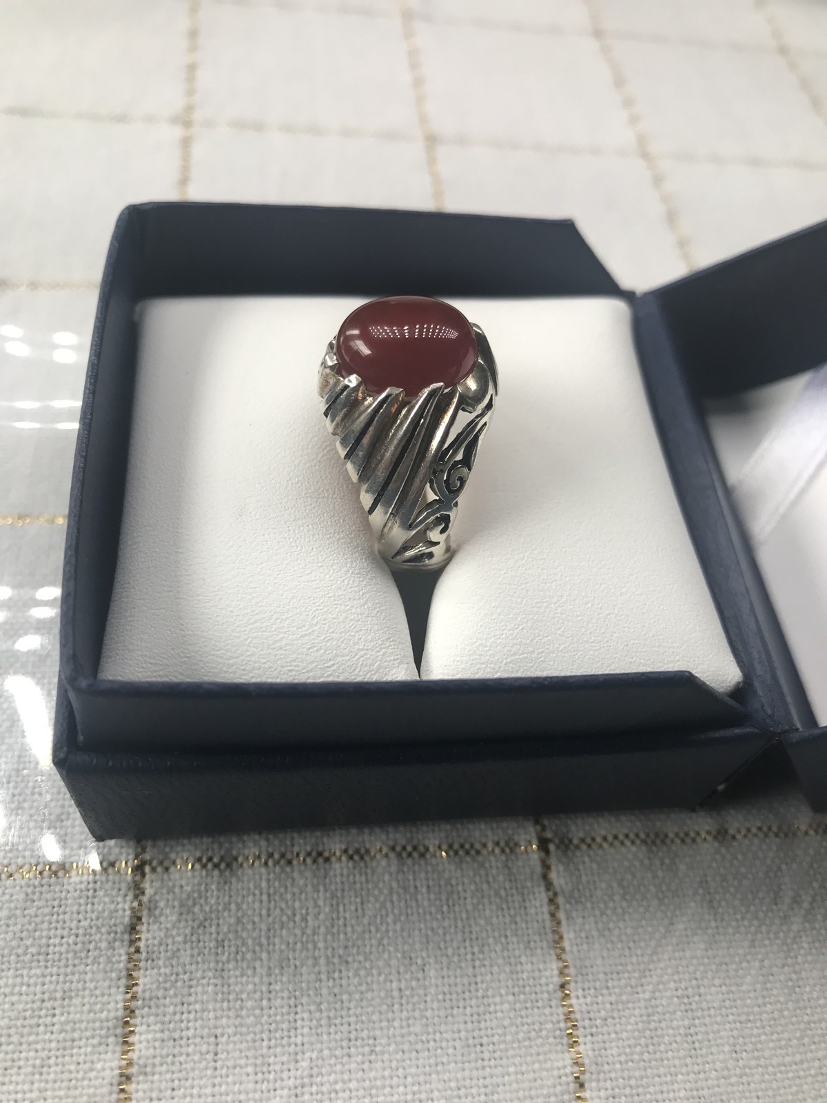как выглядит Men Ring STERLING SILVER 925 Natural Red AGATE AQEEQ Size 10 фото