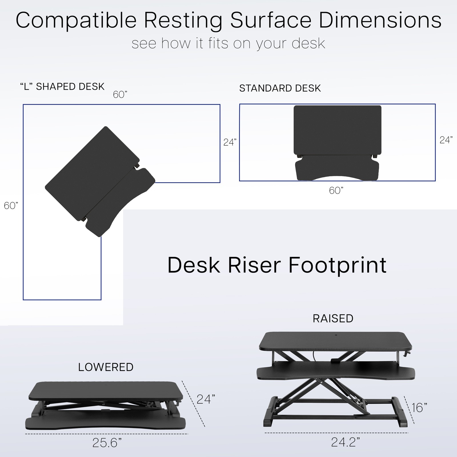 VIVO Gray 26 Height Adjustable Standing Desk Monitor Riser, Black Frame
