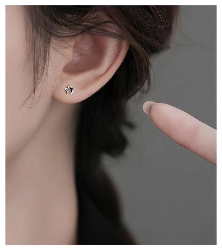 как выглядит Surgical Steel Black Star Screw Back Ear Stud Earrings Trendy Jewelry For Women фото
