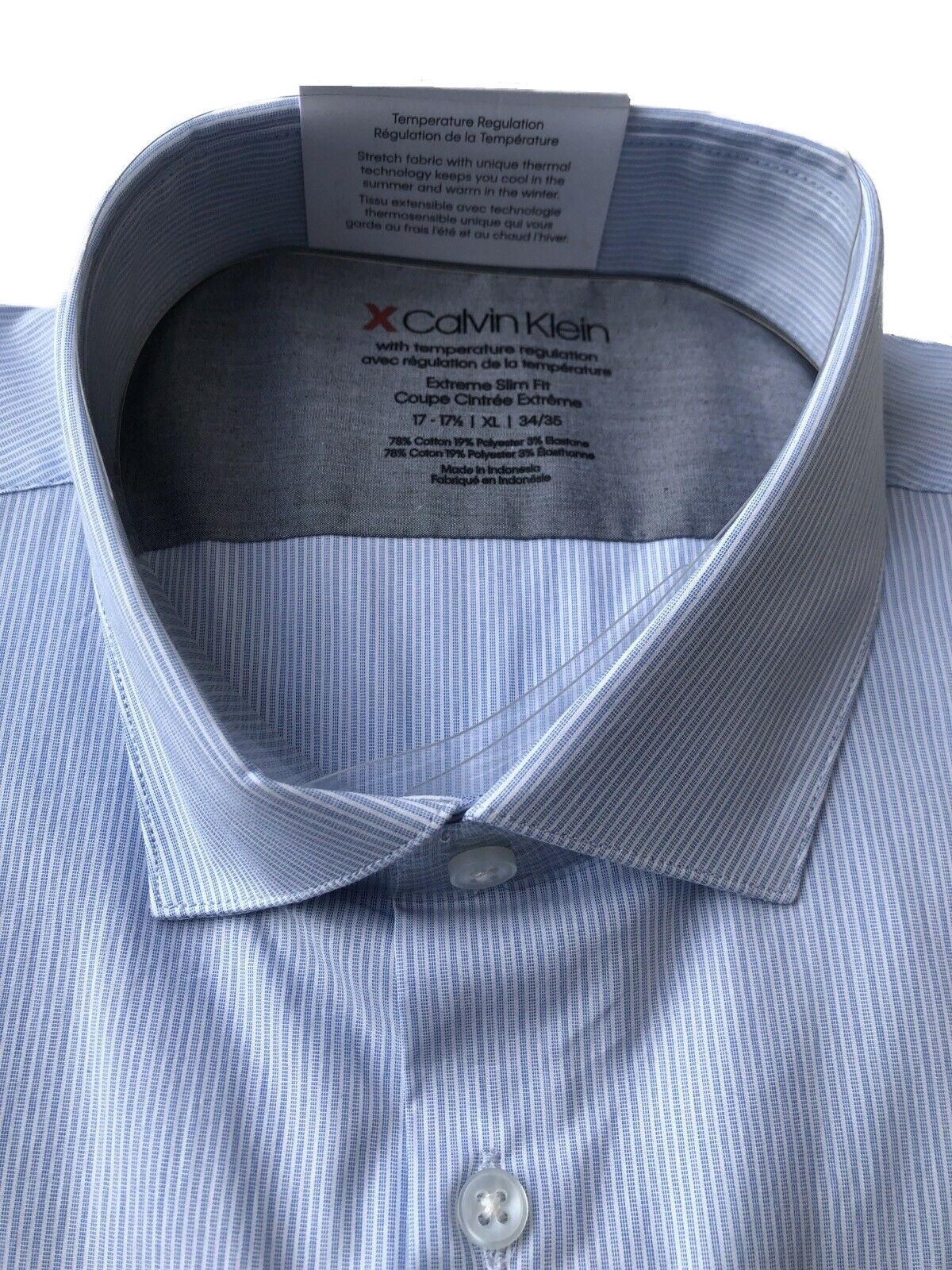 Calvin Klein Men's Extreme Slim Fit Stripe Dress Shirt ,French Blue,Sz M 34/35