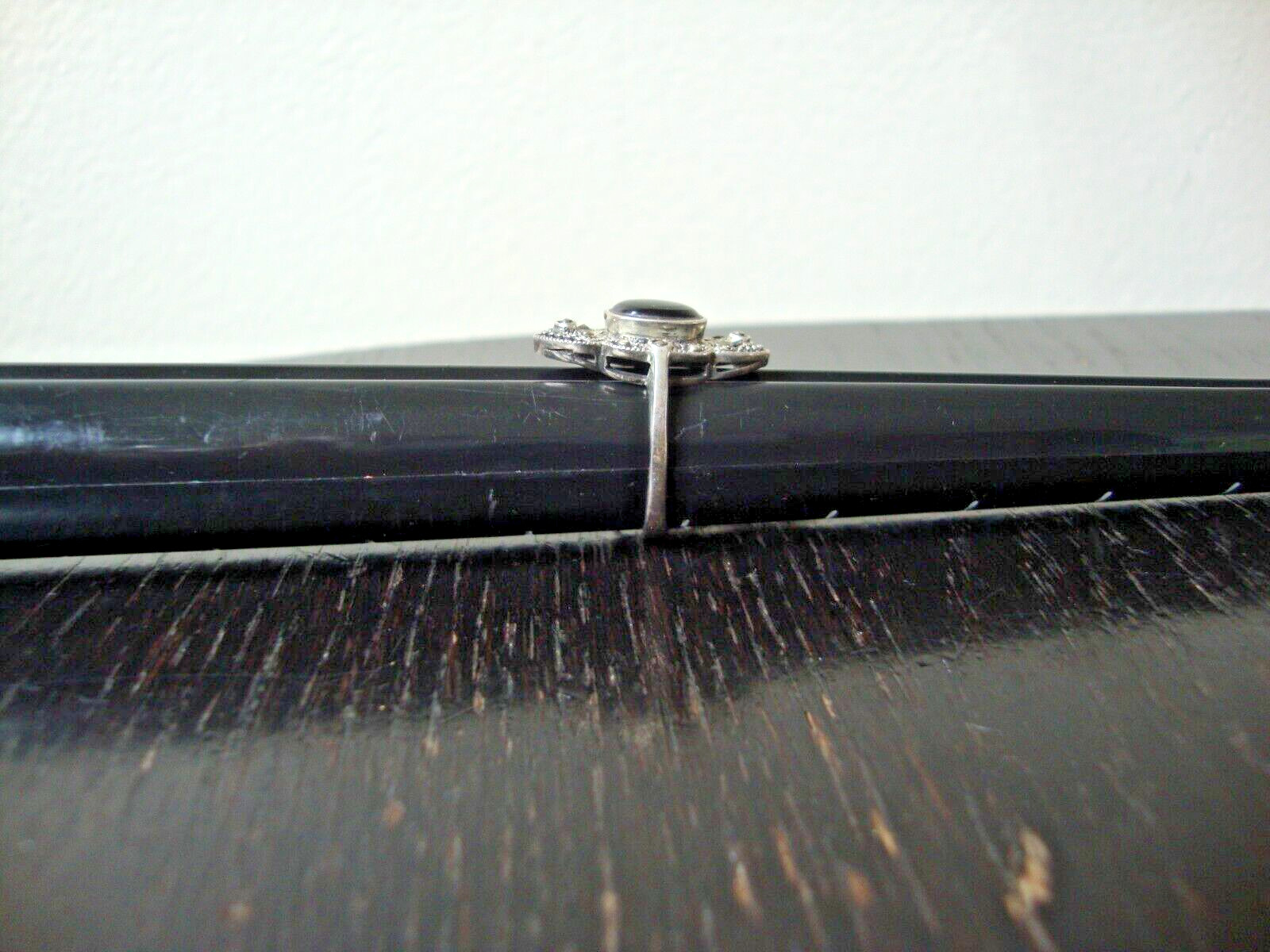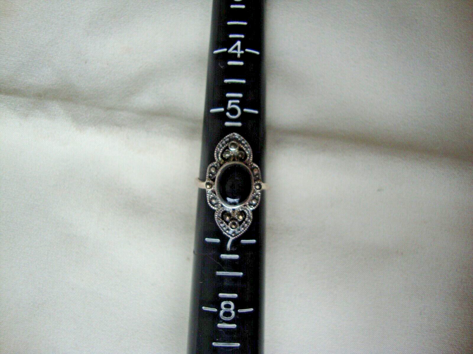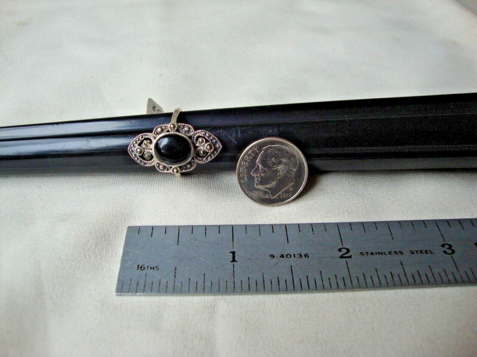 как выглядит VTG OVAL BLACK ONYX CABOCHON W/ MARCASITE STERLING SILVER STAMPED 925 RING SZ 6 фото