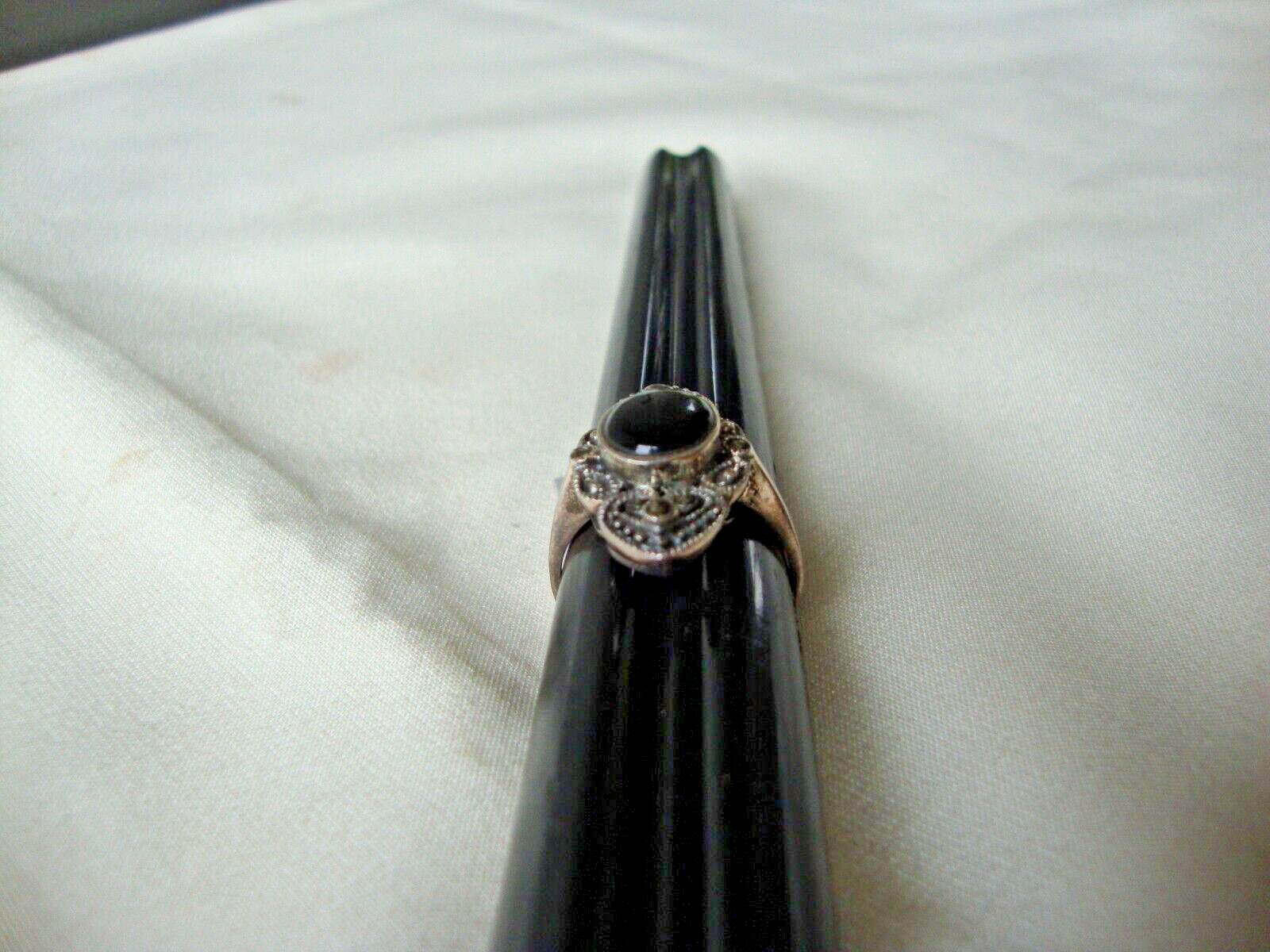 VTG OVAL BLACK ONYX CABOCHON W/ MARCASITE STERLING SILVER STAMPED 925 RING SZ 6