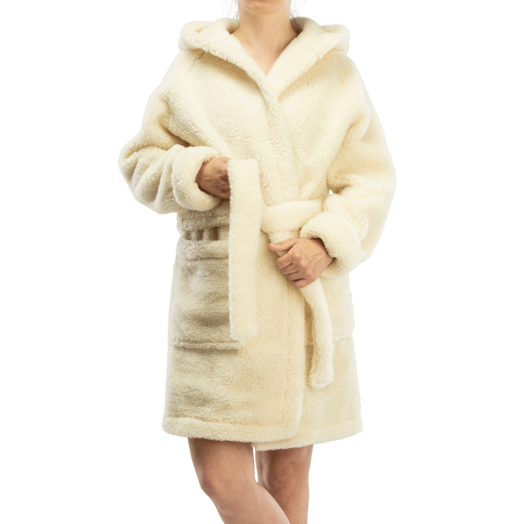 Luxury Woolen Hooded BATH ROBE Dressing SPA Gown 100 Merino Wool