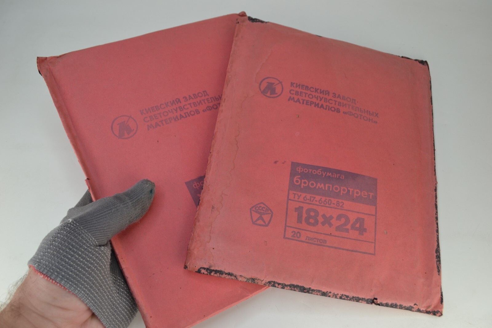 как выглядит SET OF 2 USSR 18x24cm EXPIRED UNIBROM GLOSSY WHITE SLIM PHOTOPAPER PACKS 1987/88 фото