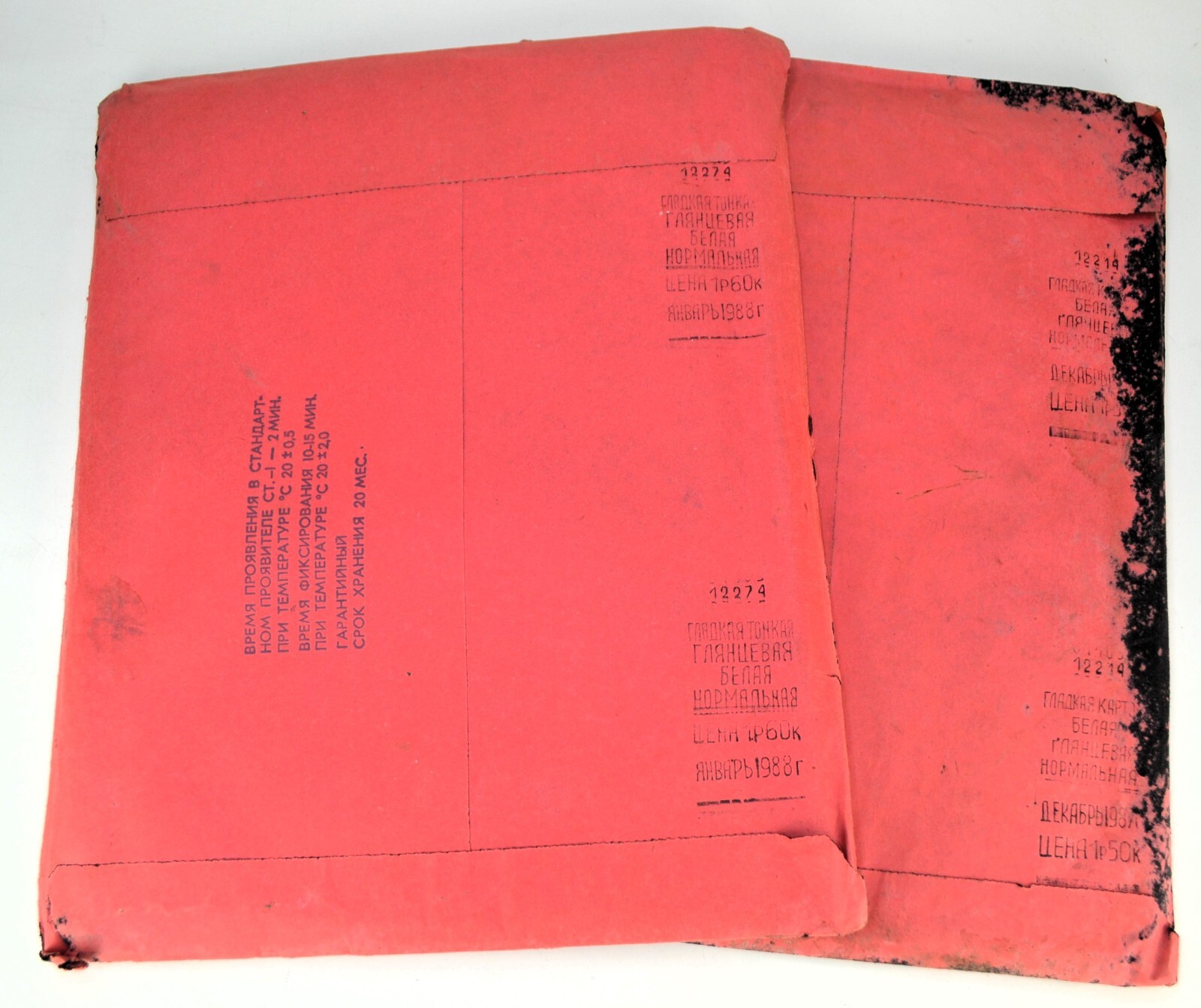SET OF 2 USSR 18x24cm EXPIRED UNIBROM GLOSSY WHITE SLIM PHOTOPAPER PACKS 1987/88