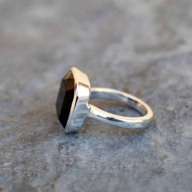 925 Sterling Silver Black Onyx Cushion Shape GENUINE Handmade Ring