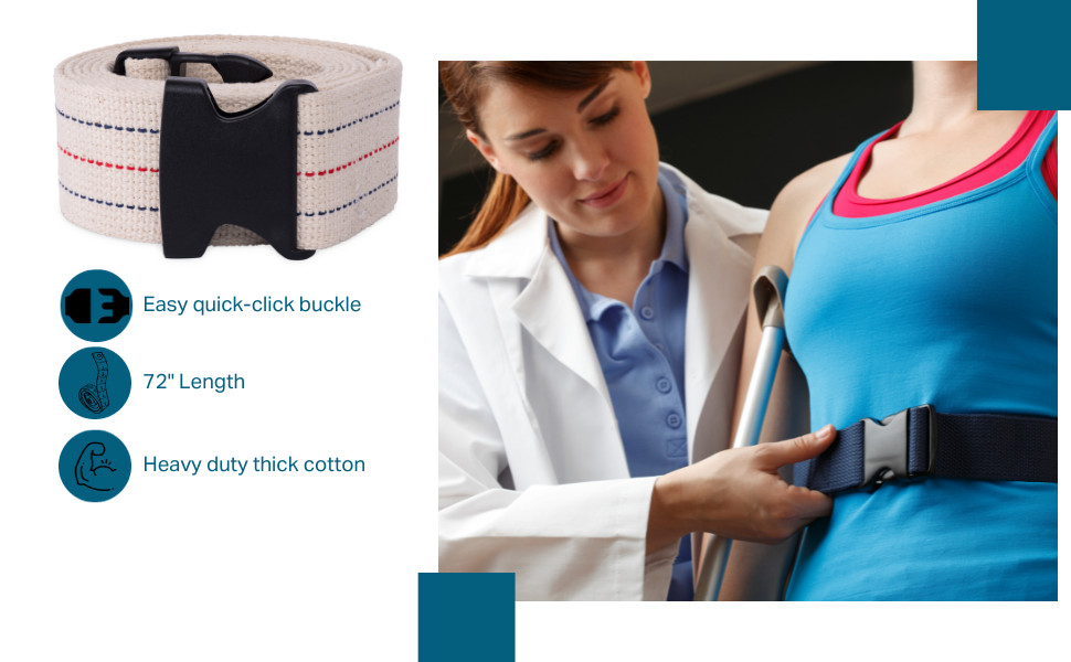 Gait Belt and Transfer/Walking Assist Quick-Click Standing Aid, 72inch Long