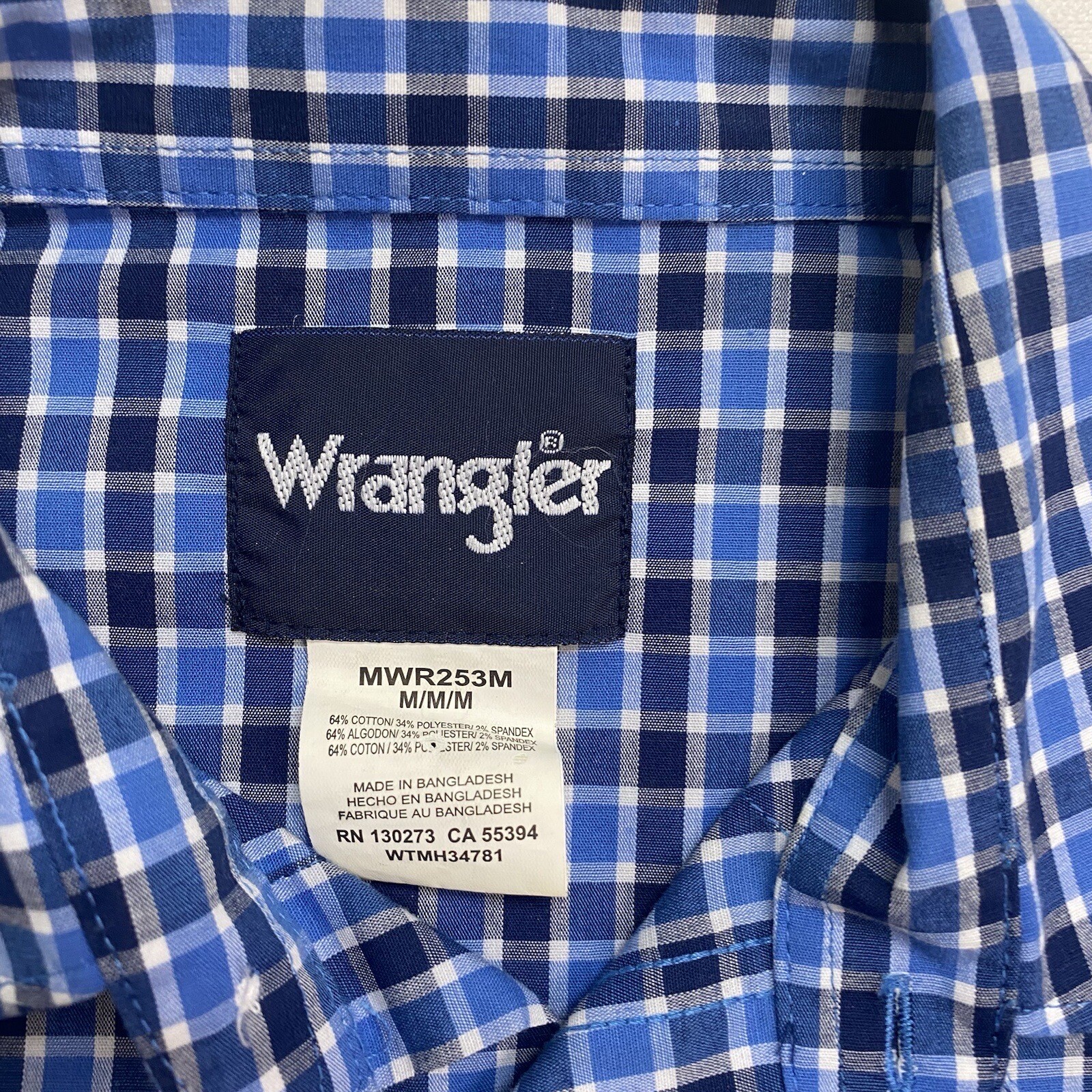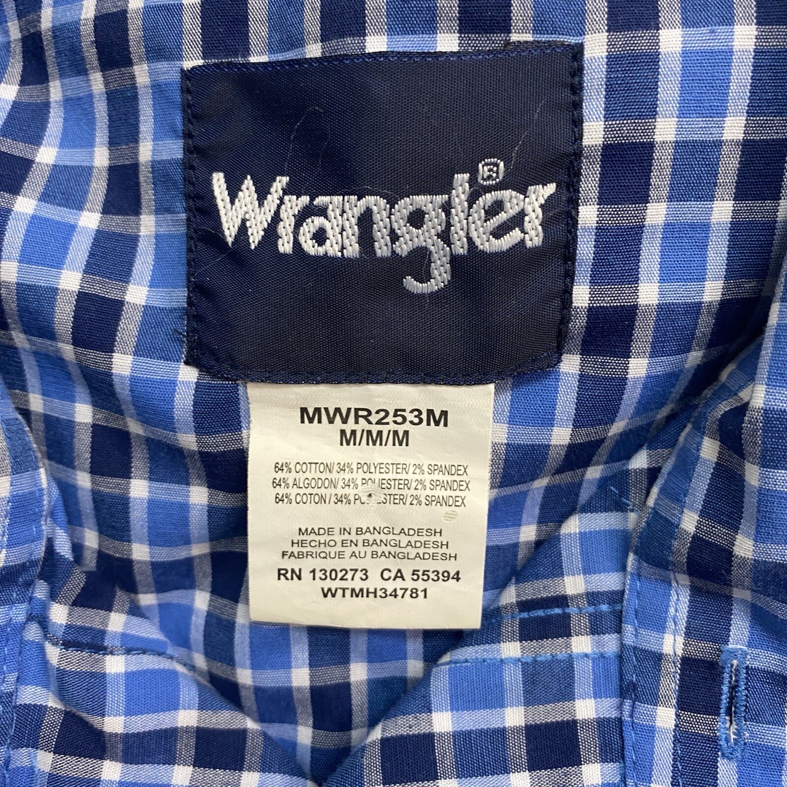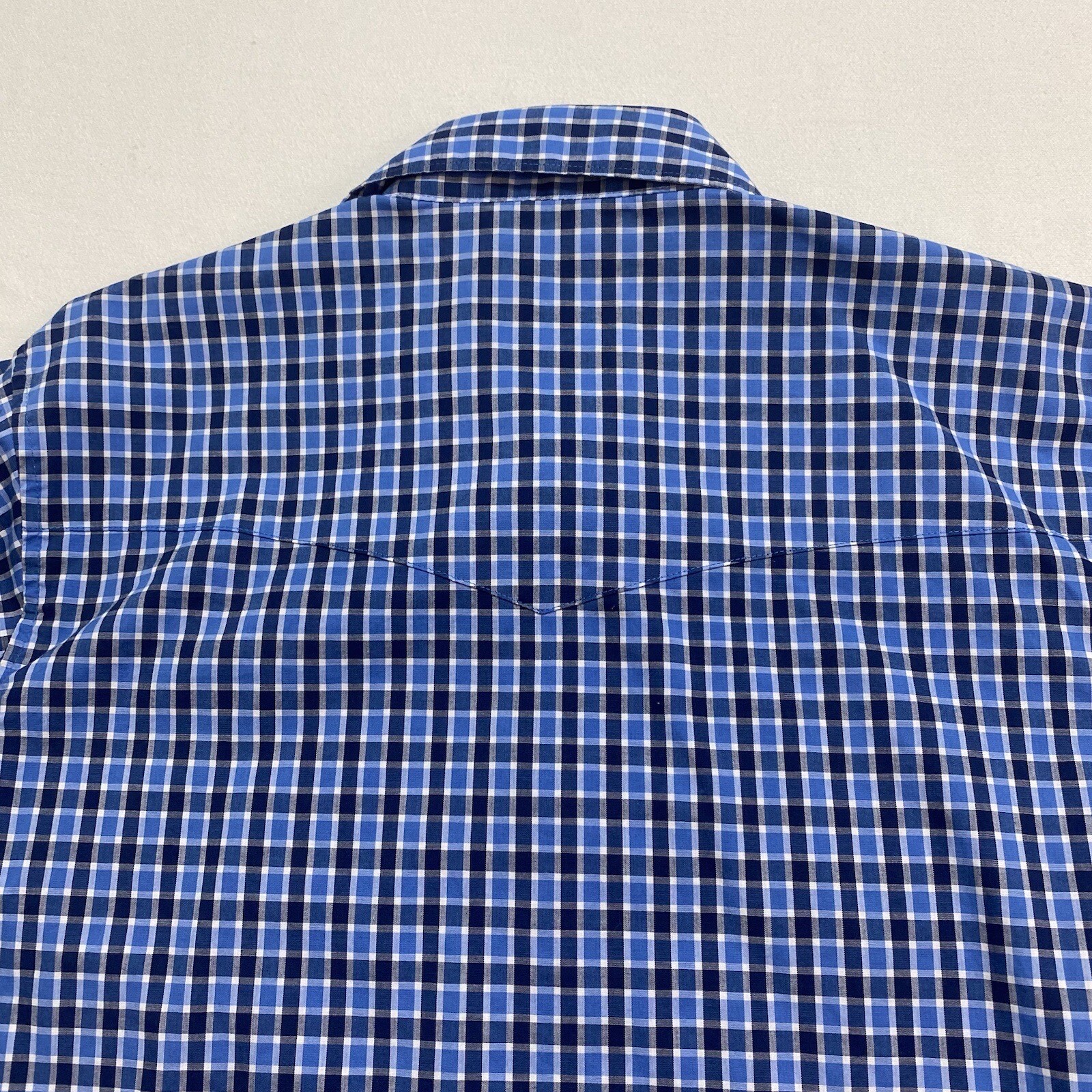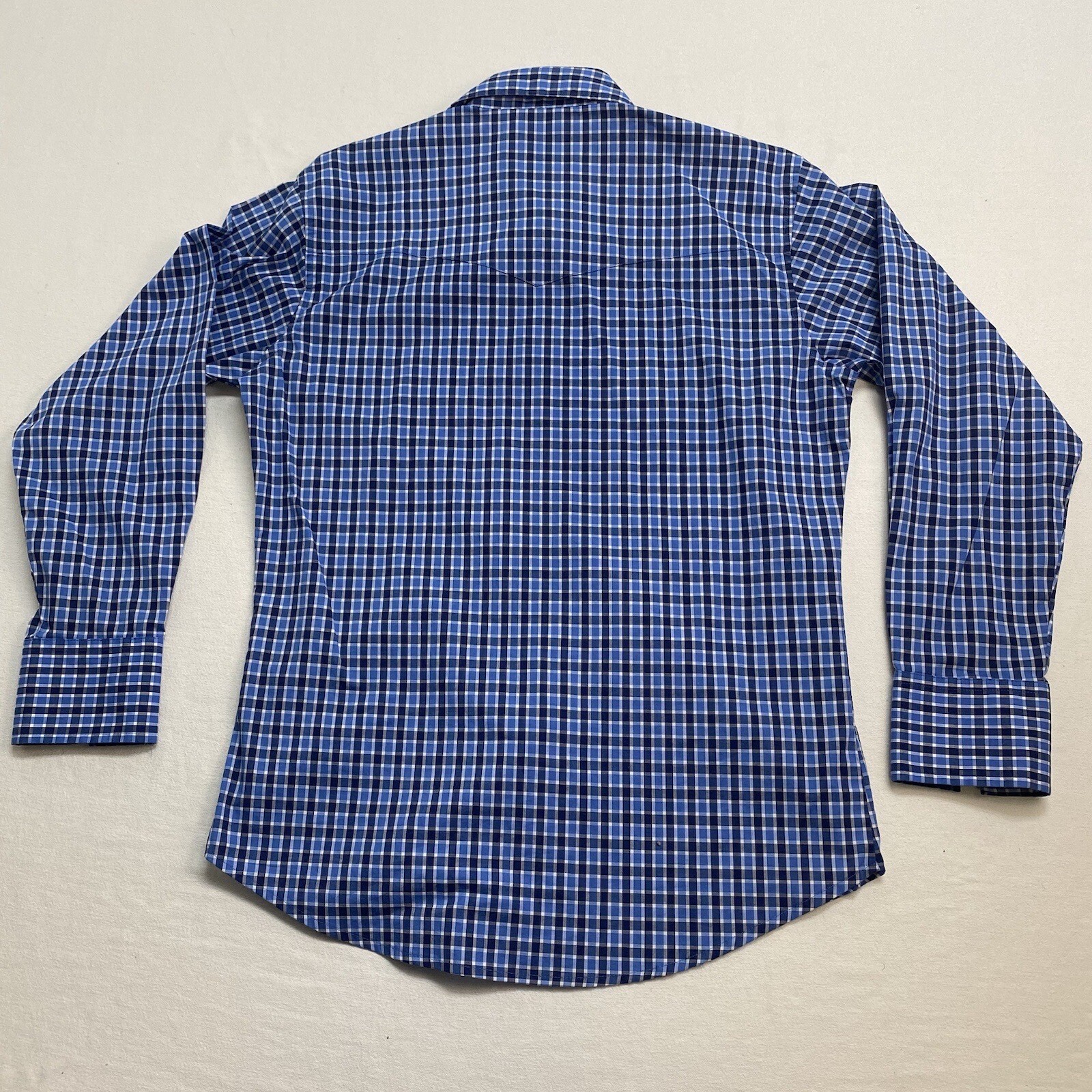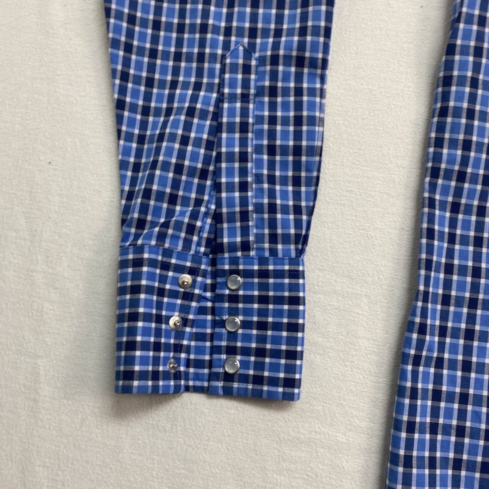 как выглядит Wrangler Western Mens Size M Pearl Snap Long Sleeve Dress Shirt Blue Plaid фото