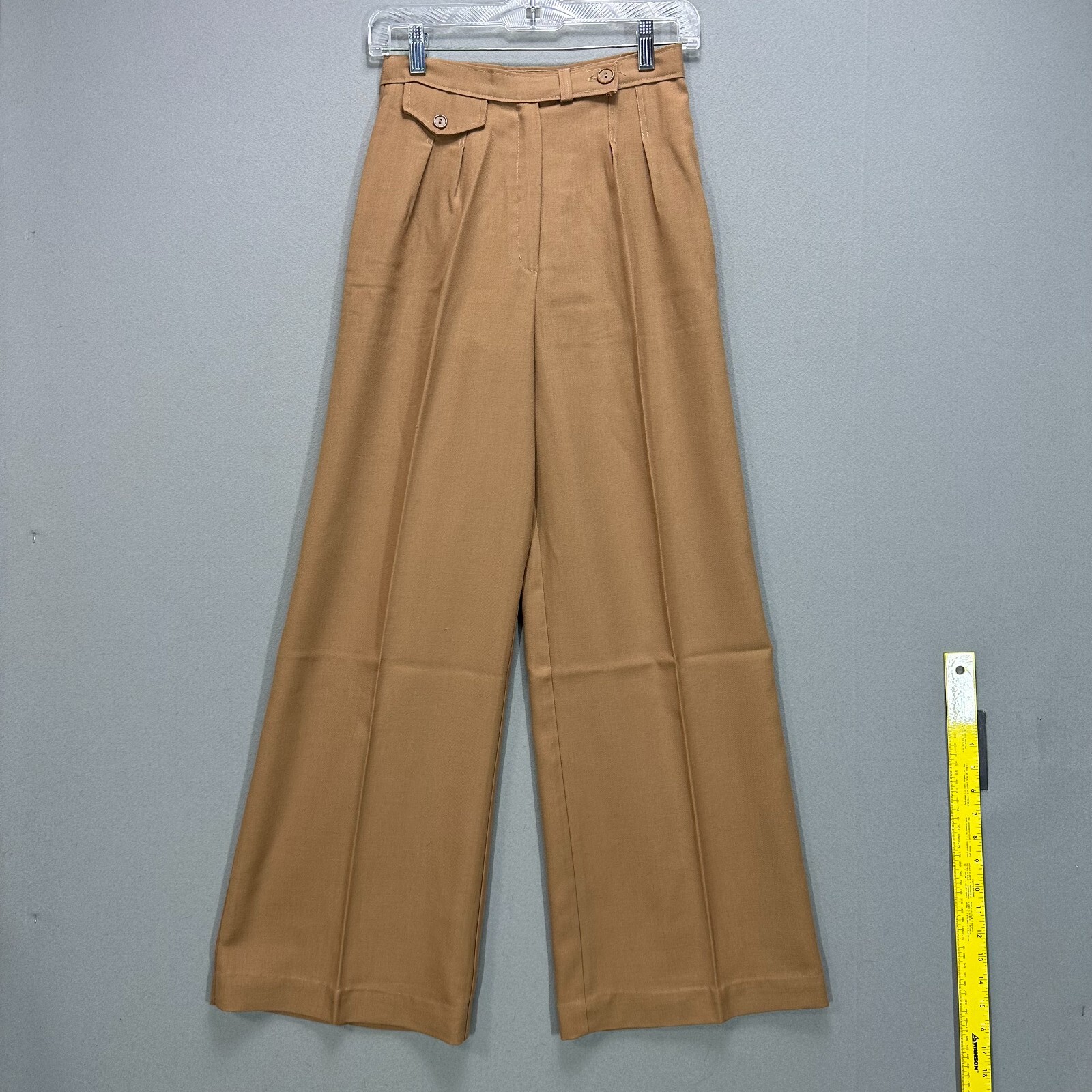 VTG 70s Bell Bottom Disco Pants Wide Leg Flare Polyester XS 25 Waist Beige Tan