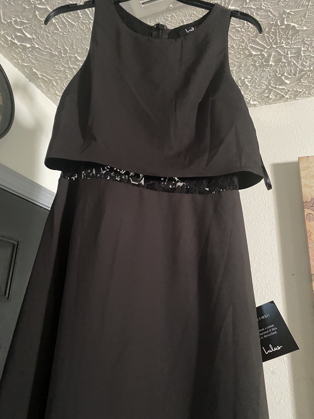 как выглядит Black Tall Formal Dress With Lace By Lulus Size Medium 12 фото