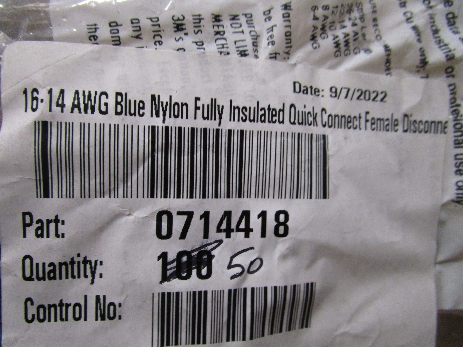 • 16-14 AWG Blue Nylon Fully Insulated Quick Connect Female Disconnect QTY 50