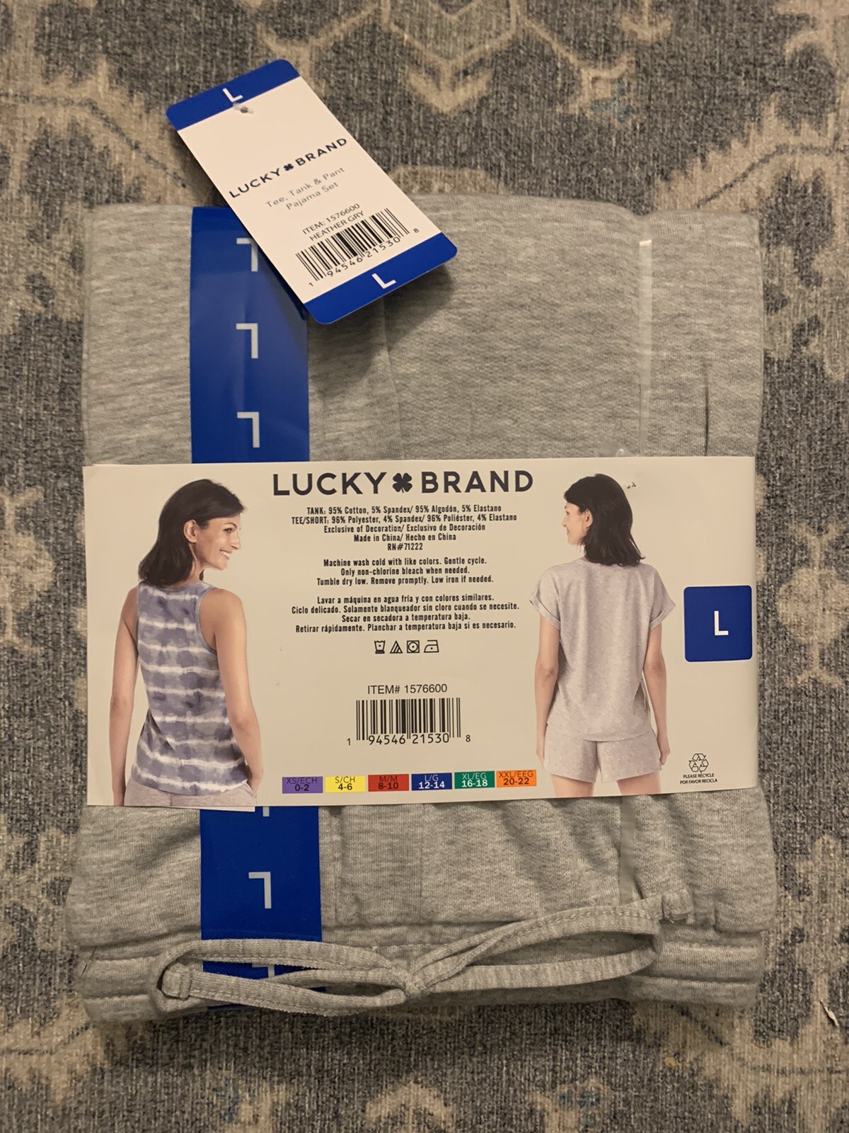 Ladies LUCKY BRAND Heather Gray Tee/Tank/Short Pant Pajama Set Size Large 12-14