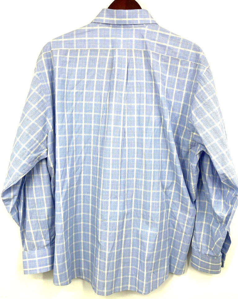 Chaps Stretch Collar Wrinkle Free Regular Fit 18 34/35 Blue Check Plaid