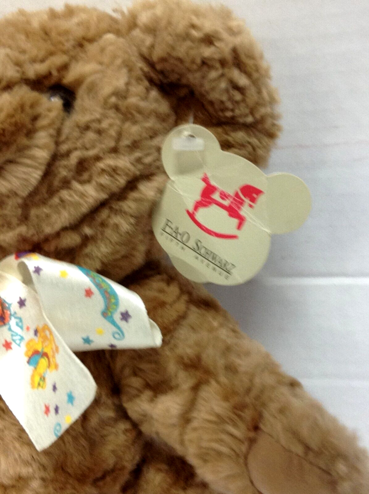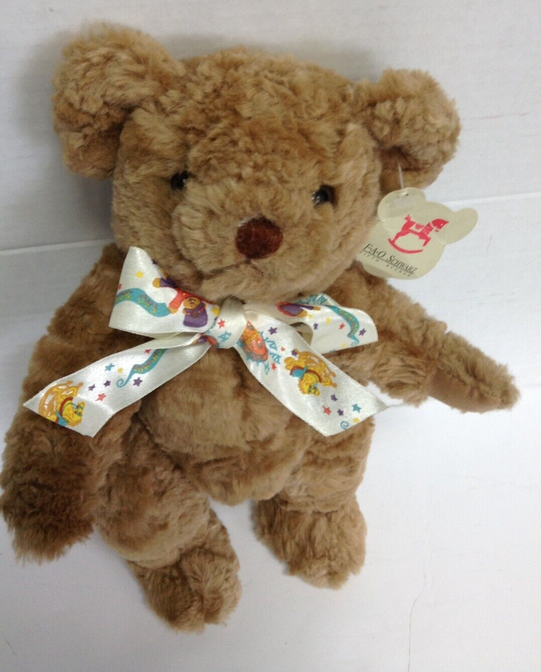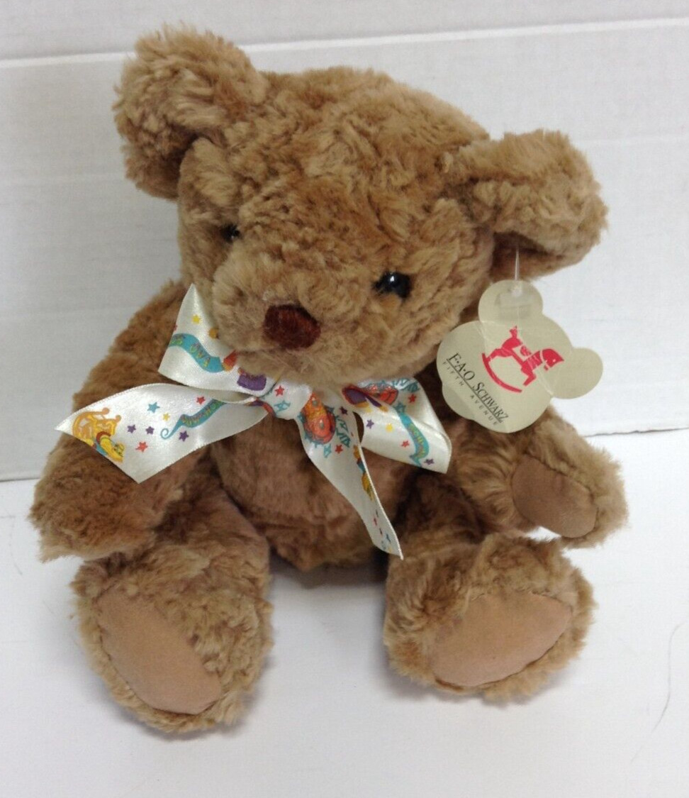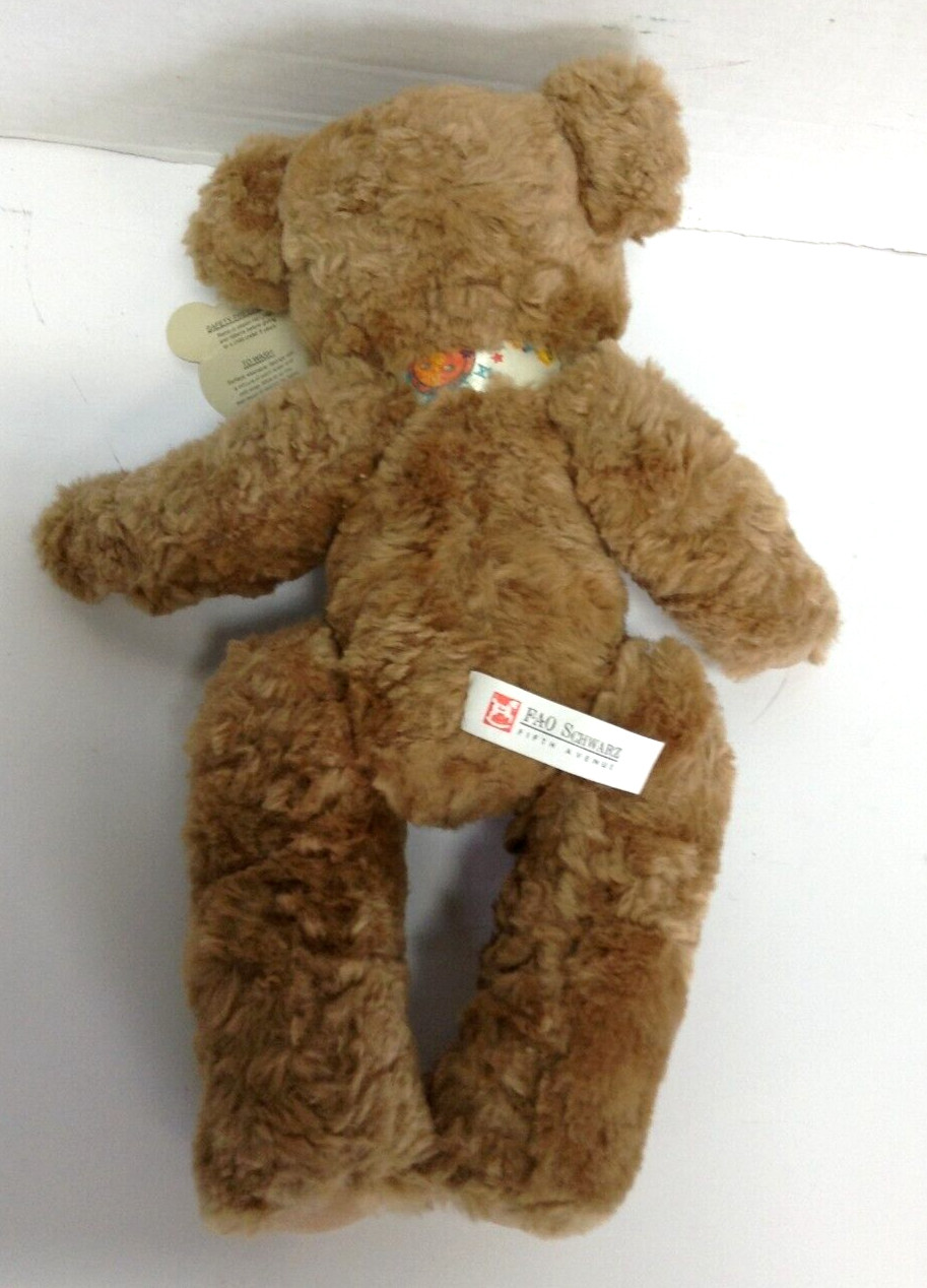 • NWT Vintage FAO Schwarz Fifth Ave 12 teddy Bear ribbon jointed arms legs brown