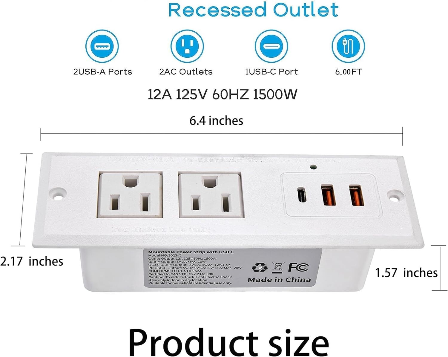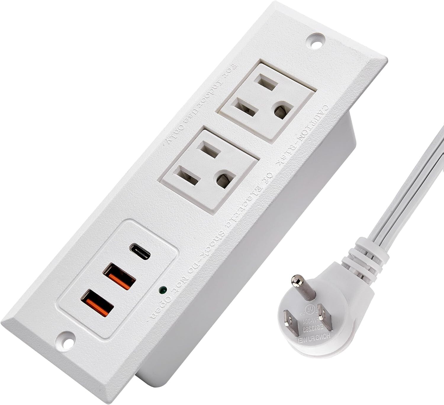 Recessed Power Strip with USB-C Ports Fast Charging 2 USB 2 AC Desk Outlet White