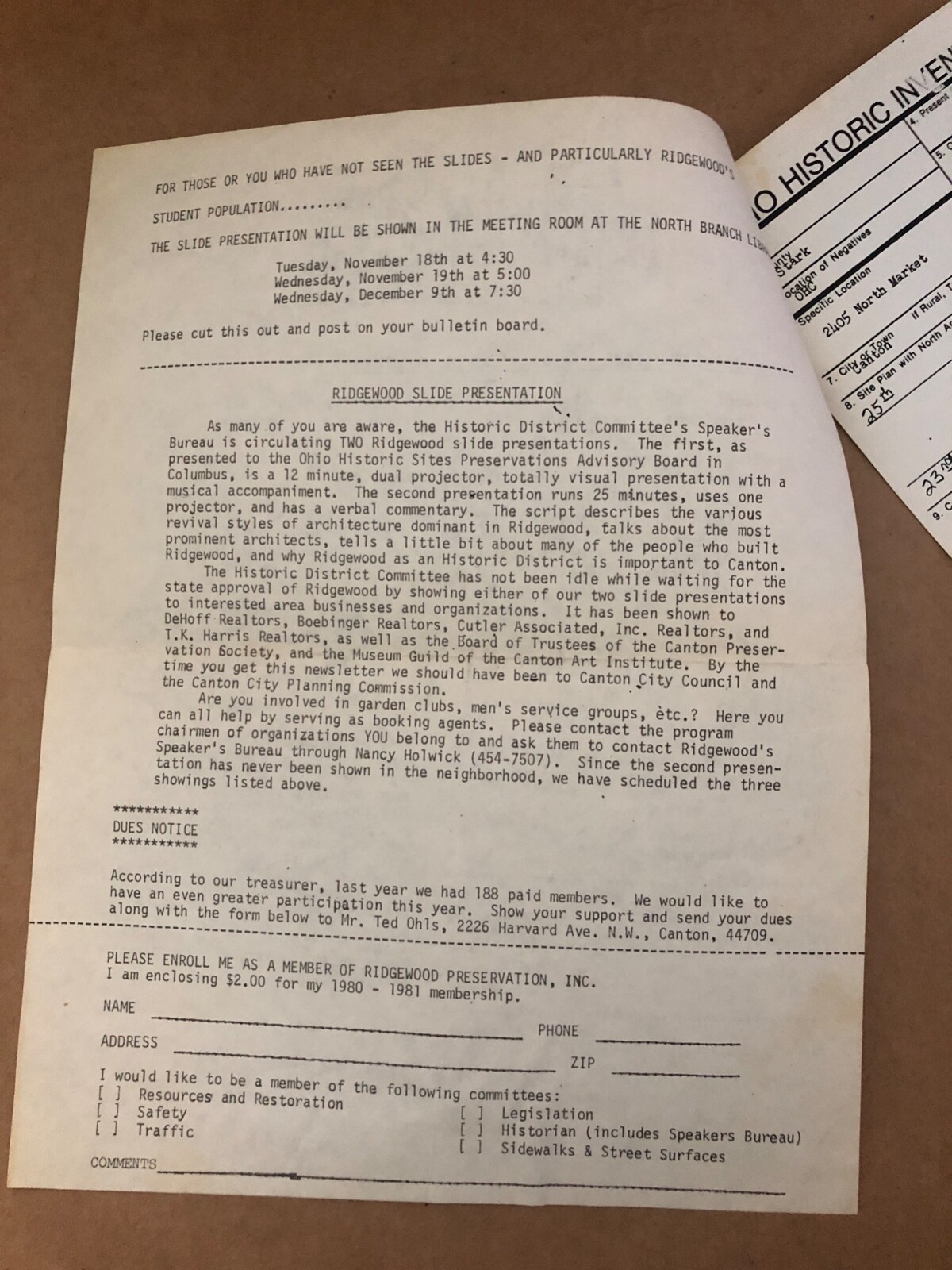 Vintage 1981 RIDGEWOOD PRESERVATION COMMITTEE Canton Oh Brochure North Market
