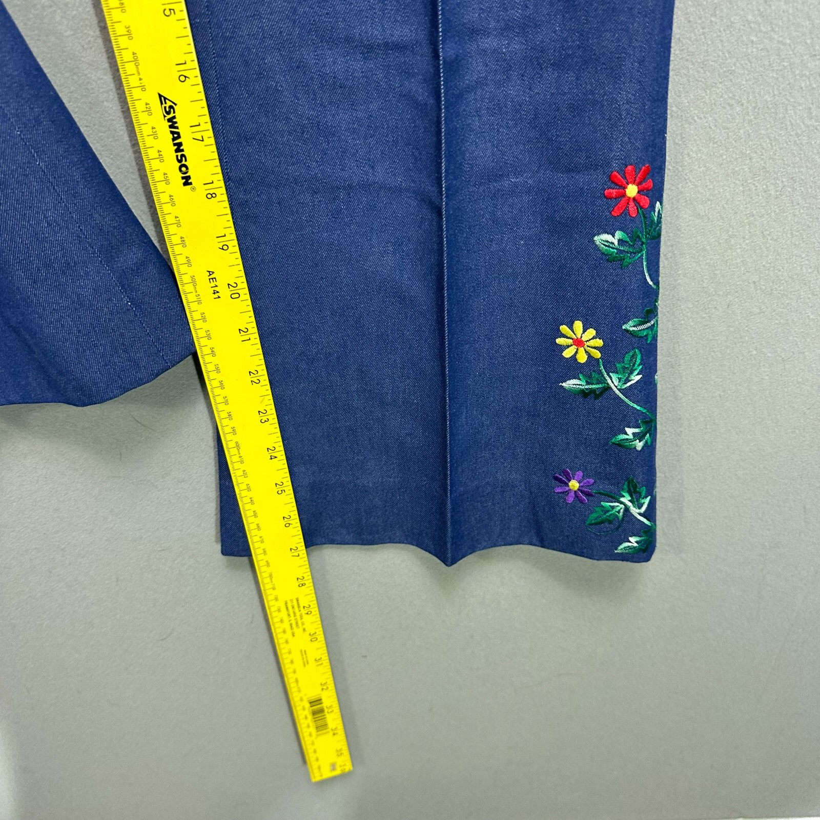 как выглядит VTG 70s Jeans Embroidered Floral Bell Bottom High Rise 30" Waist Chambray Blue фото