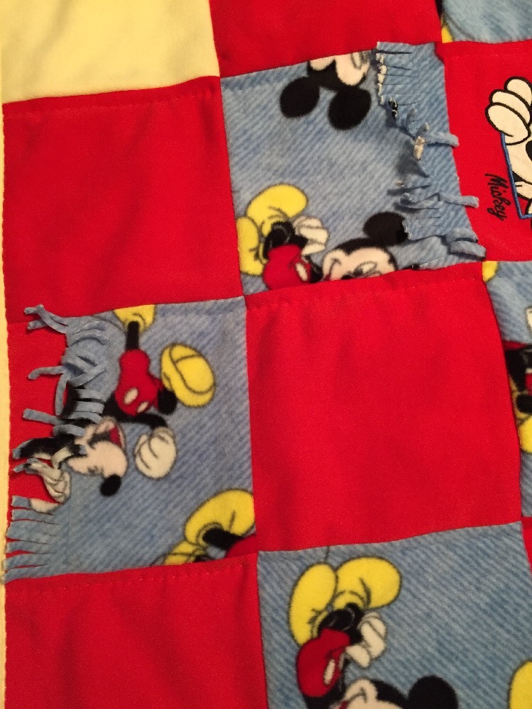 Upcycle Mickey Mouse Handmade Baby Crib Quilt Fleece Infant Shower Gift Disney