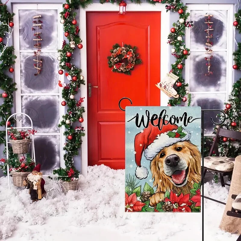 как выглядит Merry Christmas Golden double sided garden flag 12" x 18" Same Day Shipping фото